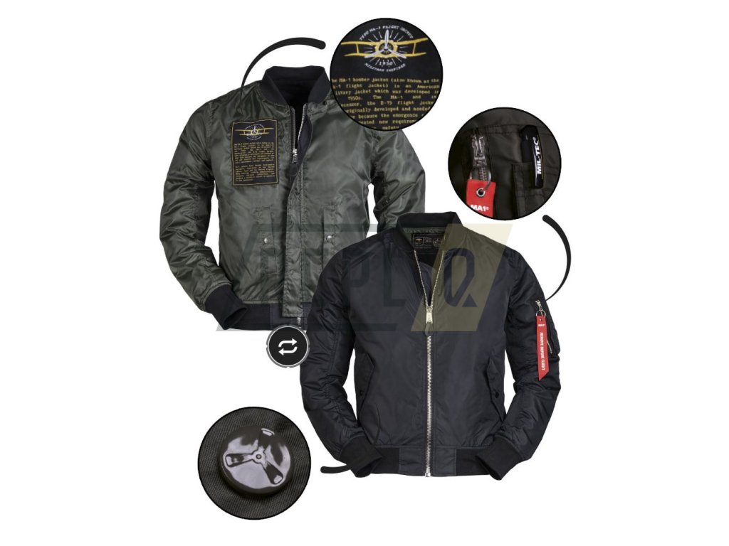 Odlehčená letní verze klasické pilotní bundy MA1. Svršek bundy je vyrobený z odolného nylonu, podšívka je polyesterová. Zapínání je řešeno pomocí robustního kovového zipu. Kapsy na ruce jsou kryté légou a uzavírají se pomocí stiskacího knoflíku. Kapsa na levém rukávu je uzavírána zipem a opatřena páskou s nápisem "REMOVE BEFORE FLIGHT". Dvojice vnitřních kapes skvěle poslouží na drobné cennosti či doklady. Límec, manžety rukávů a spodní lem jsou vyrobeny z elastického úpletu.