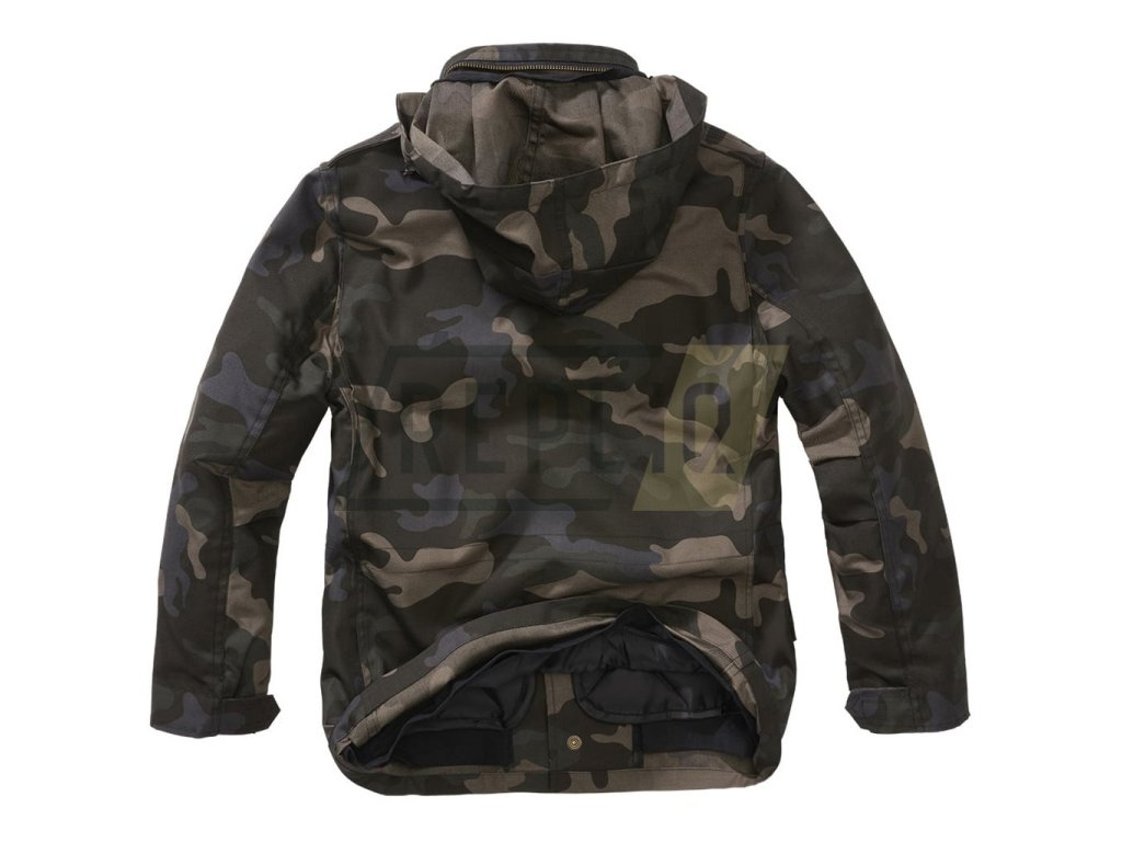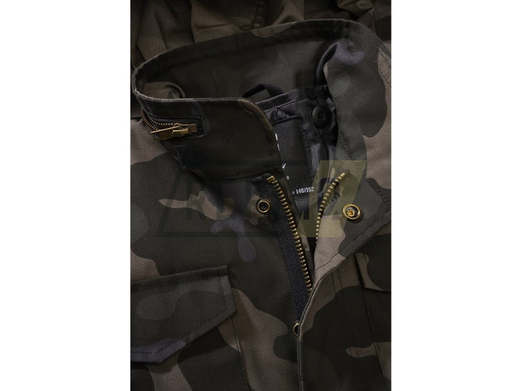 Kvalitní dětská bunda vycházející z dnes již legendárního střihu bundy M65. Na její výrobu byl použit odolný směsný materiál s vodoodpudivou úpravou. Bunda se zapíná mohutným zipem krytým légou uzavíranou pomocí druků, a na přední části bundy se nachází čtveřice prostorných kapes uzavíraných chlopní. Pro zlepšení tepelných vlastností v bundě naleznete odpojitelnou zateplenou vložku, přičemž kapuci chránící před nepřízní počasí naleznete uzavřenou v límci. Manžety rukávů jsou nastavitelné pomocí suchého zipu, spodní lem bundy lze nastavit pomocí šňůrky s brzdičkou.