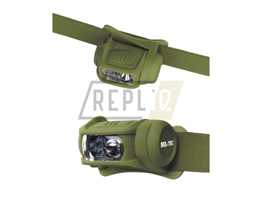 Svítilna čelová LED 4 barvy BÍLÁ / ZELENÁ / ČERVENÁ / MODRÁ - ZELENÁ