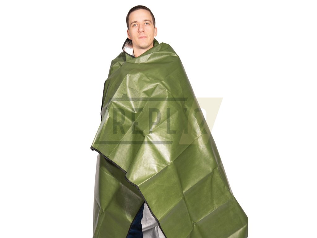 Speciální deka vyvinutá pro nouzové situace. Čtyři vrstvy super izolačních materiálů. Deka odráží zpět a ponechává více než 80 % vyzařovaného tělesného tepla.