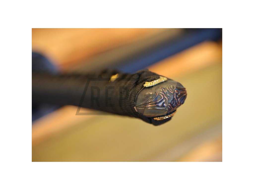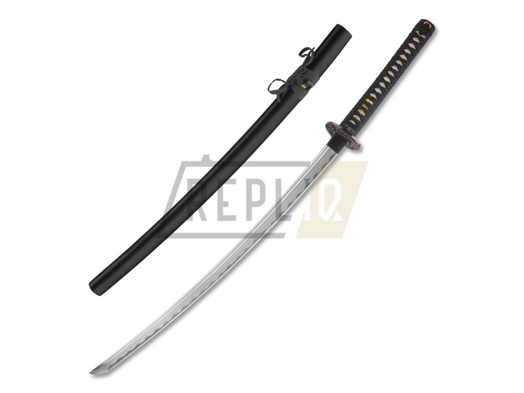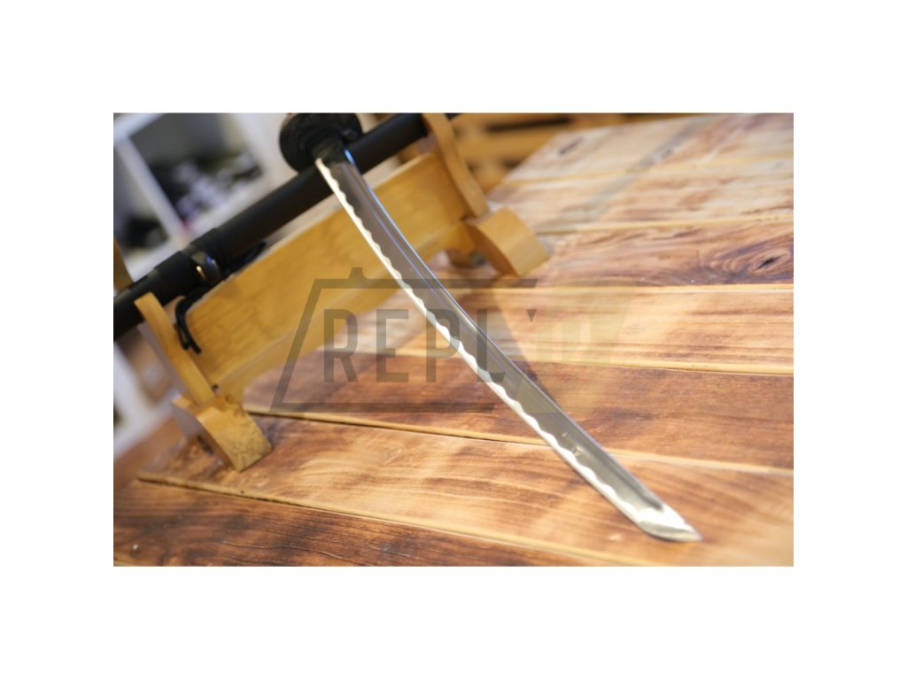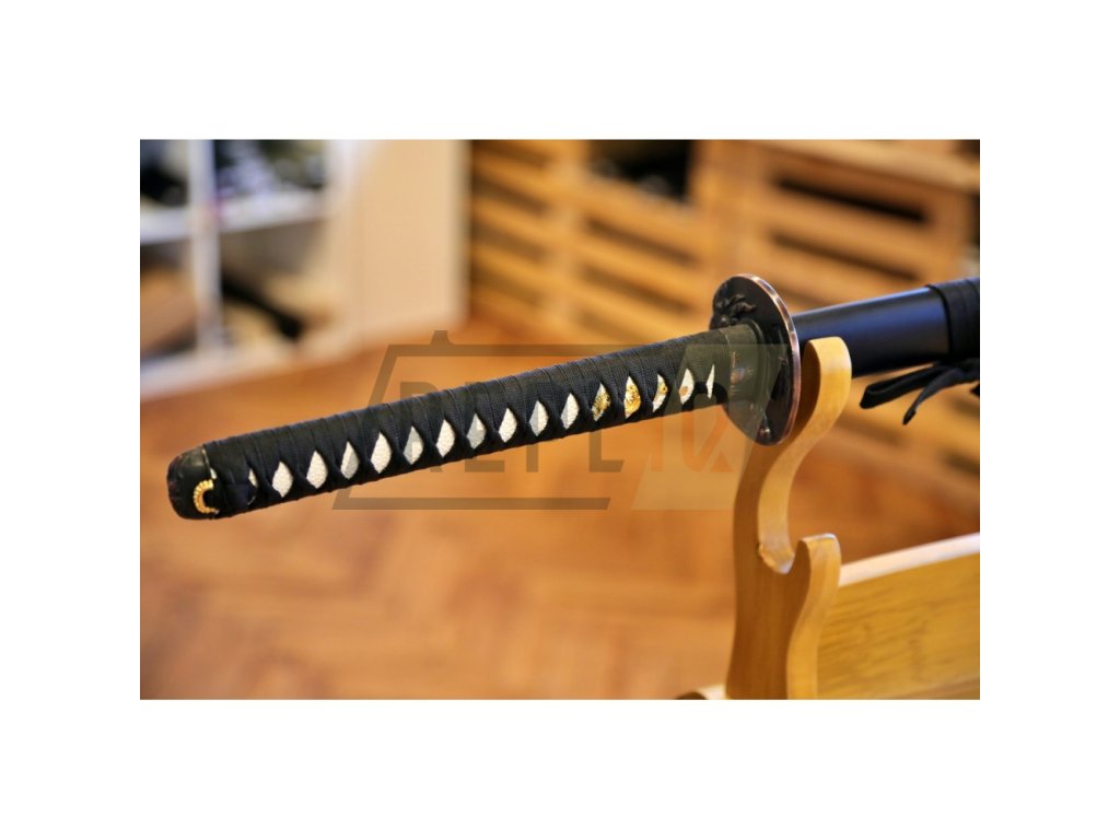 Kovaný meč s čepelí z uhlíkové oceli AISI 1045 s leštěnou imitací kalení (hamonu) a žlábkem Bo-Hi. Ostrý (broušený) samurajský meč najde své uplatnění jako dekorace, ale i k aktivnímu nácviku bojového umění. Katana není zcela vhodná k sekání tvrdších materiálů. Ocel není parciálně zakalena (hamon je pouze leštěný) a proto má nízký stupeň tvrdosti. Sekání tvrdých materiálů by zanechalo stopy na ostří meče. Atraktivní a ostrá čepel, černá matná saya, tsuka (rukojeť), která je potažena pravou rejnočí kůží, to vše dělá tuto katanu velmi zajímavou a žádanou. Katana je uložena v plátěném vaku a papírové krabici. Ostří katany zdobí leštěná imitace kalicí linky hamonu. Firma Dellinger se zříká jakékoliv odpovědnosti za zranění a poškození vzniklá při použití. Schraňujte wakizashi mimo dosah dětí! Jakákoliv manipulace se samurajským mečem je na vaší vlastní odpovědnost. Nezapomeňte, že máte ve svých rukou smrtelnou zbraň!