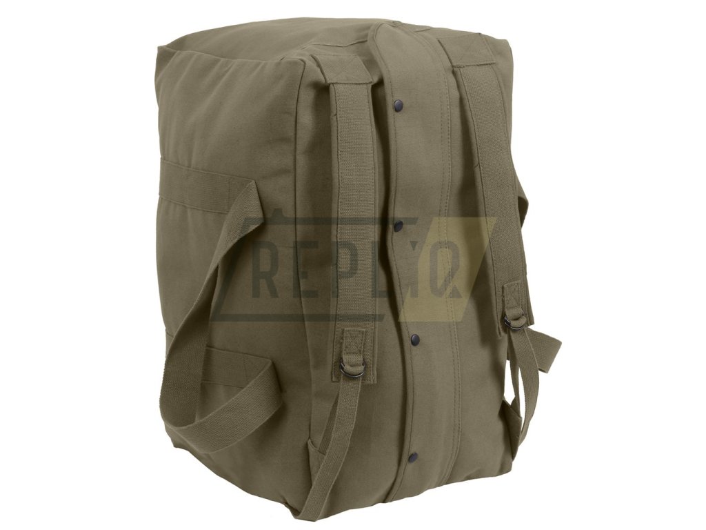 Bavlněná velká přepravní taška. Dvě velká masivní ucha na přenášení. Možnost nosit příležitostně na zádech pomocí stavitelných popruhů. Masivní zip krytý klopou na druky. Rozměr 60 x 38 x 33cm. Materiál 100% bavlna.