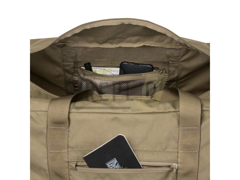 Menší cestovní taška perfektní na kratší přesuny, kdy nepotřebujete přenášet velké množství objemného vybavení. Je vyrobená z odolné 500D Cordury. K jejímu přenášení můžete využít délkově nastavitelného ramenního popruhu a klasického středového madla, které je pevně zašité do konstrukce tašky a nehrozí tak jeho odtržení ani při přenášení velmi těžké výbavy. Na jedné straně tašky naleznete plochou kapsu přístupnou skrze horizontální zip. Ta je vhodná pro dokumenty do velikosti A5. Na této kapse také naleznete našitý VELRO panel pro vaše jmenovky a nášivky na suchý zip. Čelní strana také disponuje slídovým okénkem pro jmenovky. Hlavní úložný prostor je přístupný skrze dvoucestný středový YKK zip opatřený hmatníky. Uvnitř se nachází dvojice kapes ze síťoviny, které se dají rychle a snadno uzavřít pomocí zipu. Při nepoužívání se dá taška rychle sbalit.