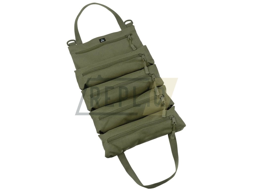 Čelní část tašky je opatřena celkem pěti kapsami uzavíranými zipem. K přenášení můžete využít vrchního a dolního madla, popřípadě lze taška zavěsit pomocí dvou vrchních D kroužků. V případě potřeby je možné tašku "zarolovat" a sepnout centrálním popruhem s plastovými sponami.