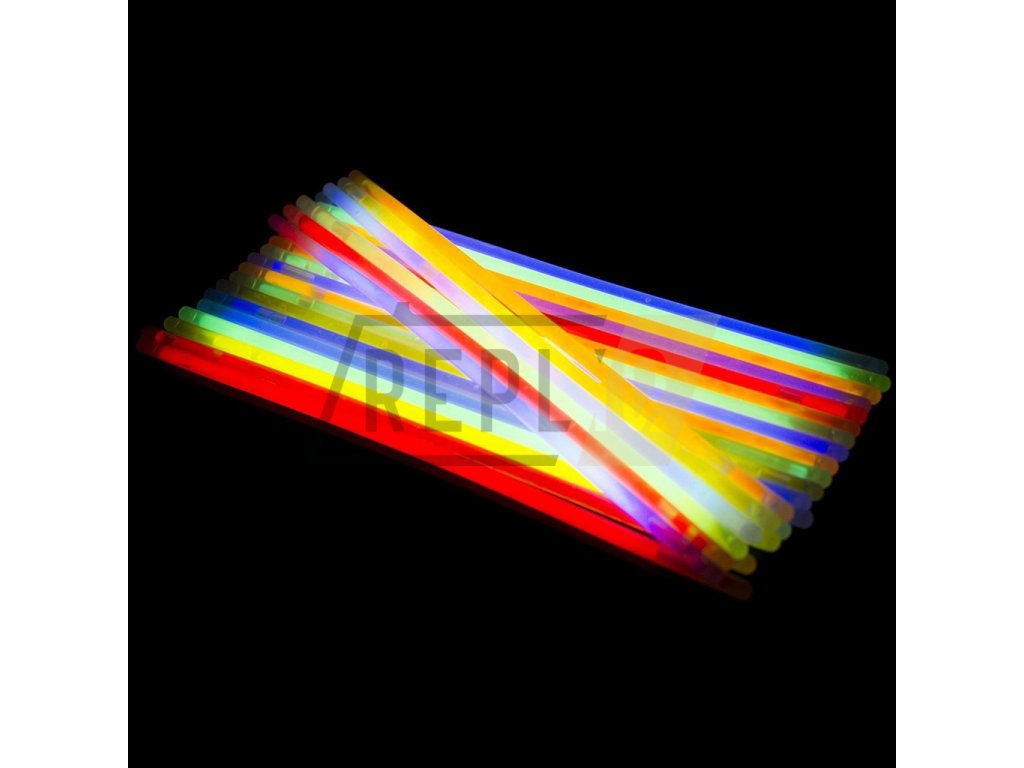Bezpečnostní svítící chemická tyčinka, tzv. light stick. Ideální v nouzových situacích, na airsoft na kempování, rybaření, potápění apod. Jsou využívány armádou, policií, hasiči, potápěči apod. v situacích, kde je nebezpečné zapalovat oheň. Tento typ světlá nevydává teplo (je možno použít je i v místech, kde hrozí nebezpečí požáru nebo výbuchu), jsou vodotěsné (fungují za deště i pod vodou), po aktivaci ihned nepřetržitě svítí. Aktivace je jednoduchá - stačí tyčku ohnout a protřepat. V balení naleznete celkem 100 kusů tyčinek o délce 20 cm a 50 konektorů na propojení tyčinek. Modrá, zelená, žlutá, červená a růžová barva.