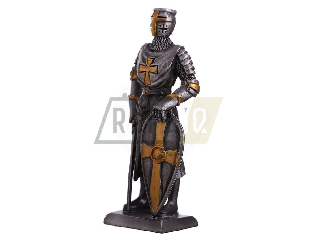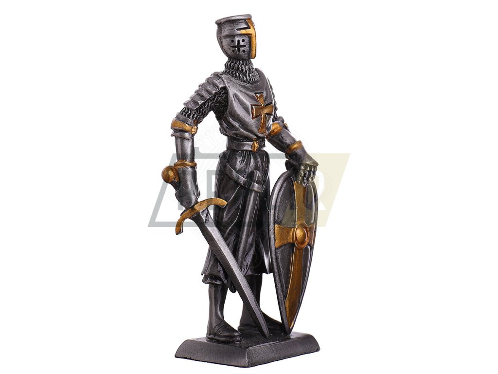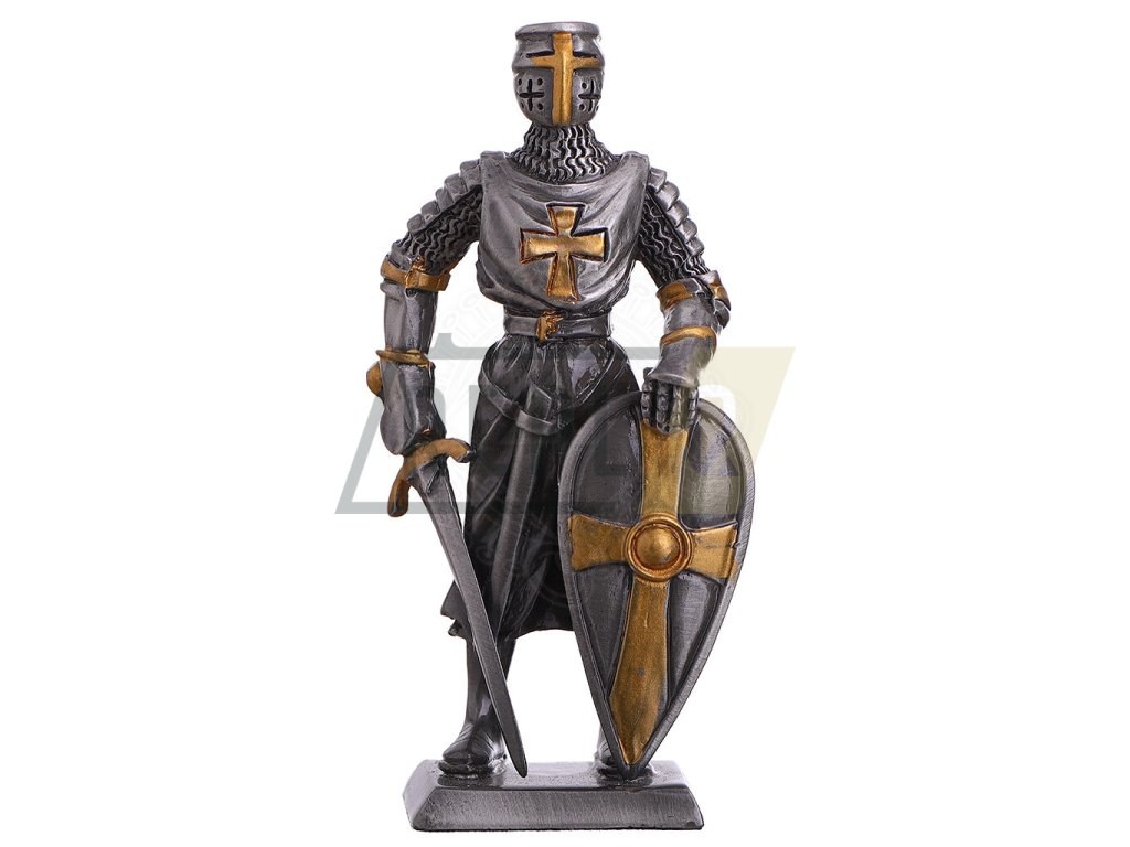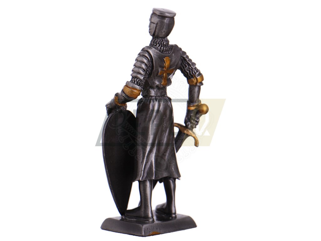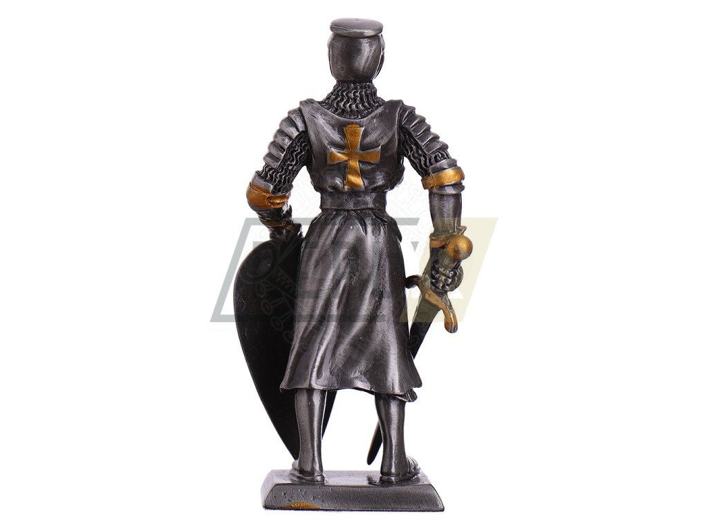 Kovová figurka Templářský rytíř s mečem a štítem, 11 cm
