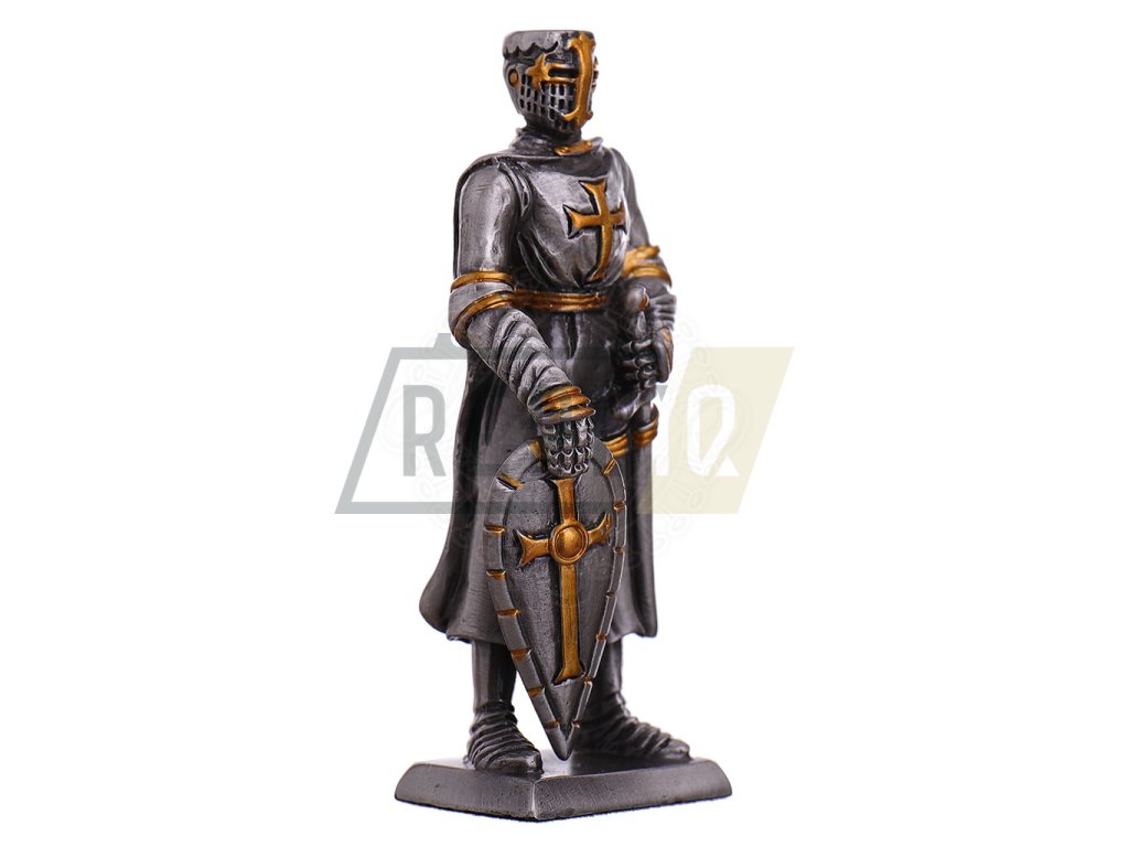 Cínový vojáček středověký rytíř templář se štítem a mečem 105mmMateriál: těžká neželezná slitina kovů (imitace cínu bez obsahu olova), na povrchu lakovaná a ručně barvená