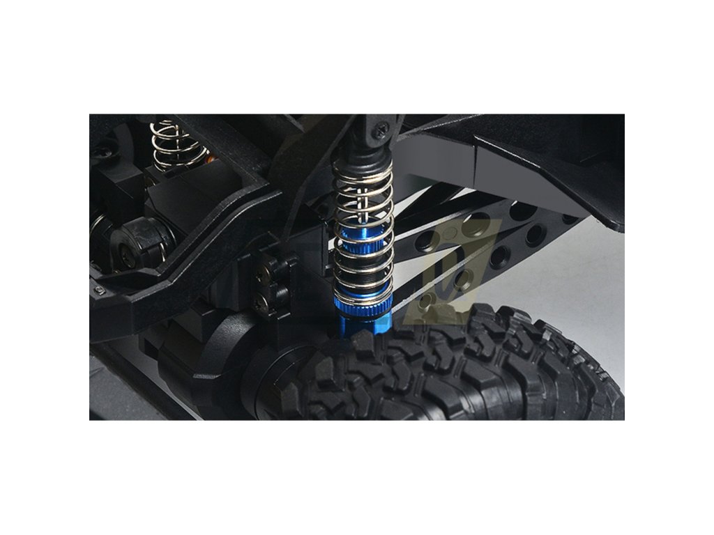 Potřebujete-li pořádný stroj do náročného terénu, je DIRT CLIMBING PICKUP RACE CRAWLER 4WD 1:10 RTR je tou nejlepší volbou. Jak již název napovídá model má náhon na všechny 4 kola, a díky svému kvalitnímu a výkonnému motoru dokáže vyvinout rychlost až 15 km/h. V kombinaci s perfektně zpracovaným ocelovým odpružením a velkými offroadovými koly s kovovými ložisky je CLIMBING PICKUP RACE CRAWLER ultimátním strojem do těch nejnáročnějších terénů. Při zdolávání nejrůznejších překážek velmi oceníte elektroniku chráněnou proti stříkající vodě a také ochranný rám se střešním nosičem, jenž nejen Váš model ochrání při případné kolizi, ale na nosiči je také možné přepravovat malé předměty. Pomyslnou třešničkou na dortu jsou přední a zadní LED světlomety, díky kterým budete moci jezdit až do pozdních večerních hodin. SUV se řídí volantovým ovladačem s digitálně proporcionálním ovládáním, které pracuje na 2.4 GHz. Model je dodáván v edici 100% RTR, což znamená, že v balení je vše potřebné pro provoz, včetně baterií do ovladače. Stačí už jen rozbalit, nabít a vyrazit zdolávat ten nejšílenější terén.