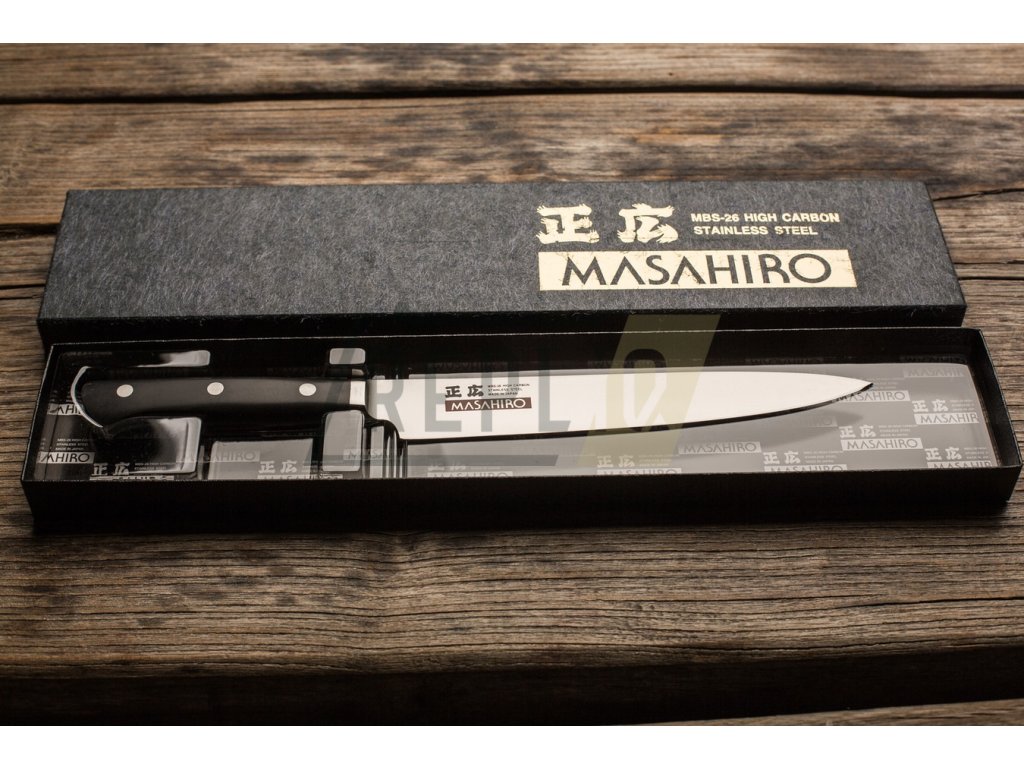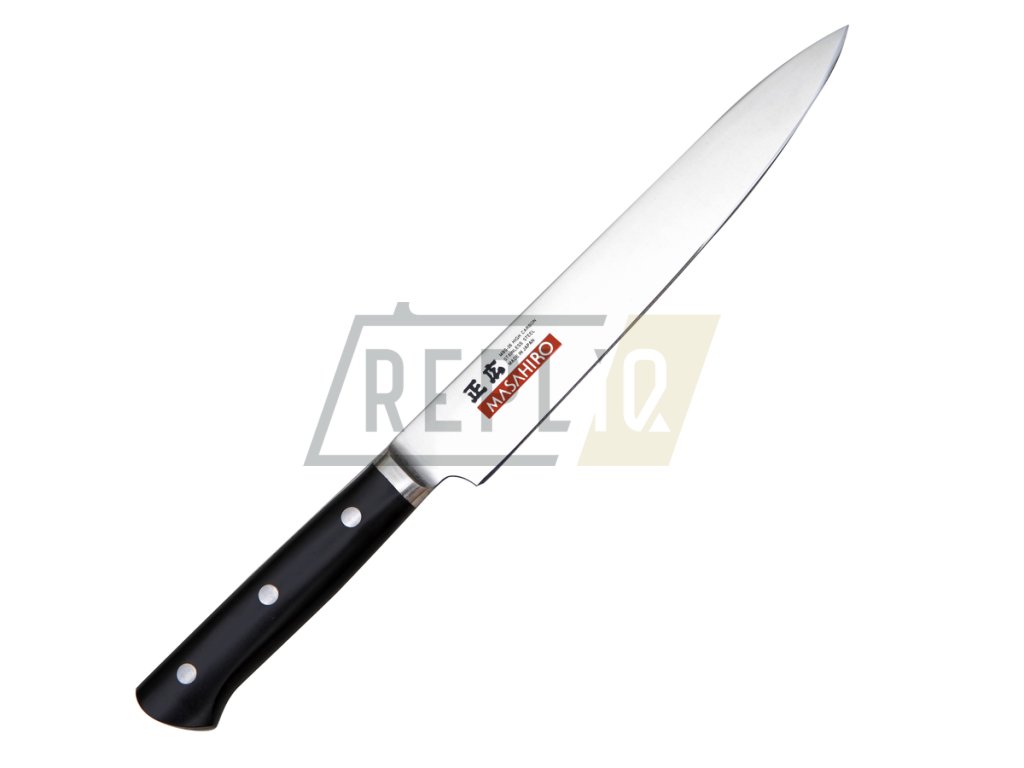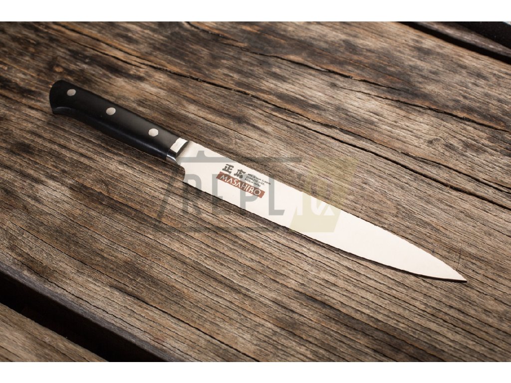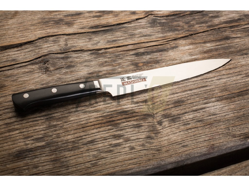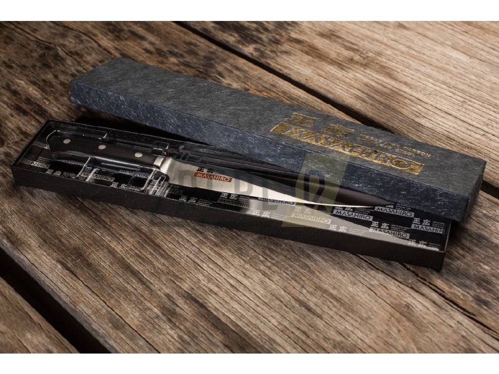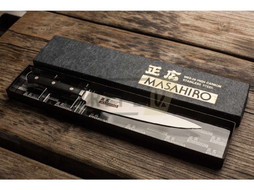Masahiro MV-H Carving s délkou čepele 200 mm podobně jako nůž Slicer na krájení masa na plátky a kostky. Je však kratší a čepel má zaoblenější špičku. Ideální pro krájení tenkých plátků masa, včetně drůbeže, pečeně, šunky a dalších velkých kusů masa. Velikostí se podobá kuchařskému noži, ale má mnohem tenčí čepel, která umožňuje přesnější krájení. K dispozici v provedení s pevnými i ohebnými čepelemi.