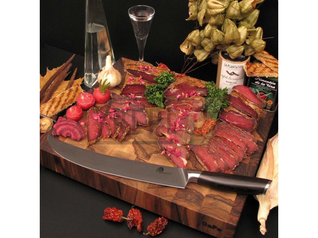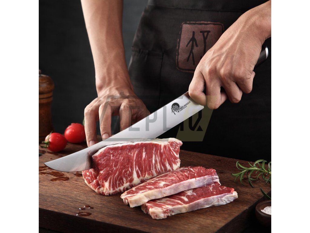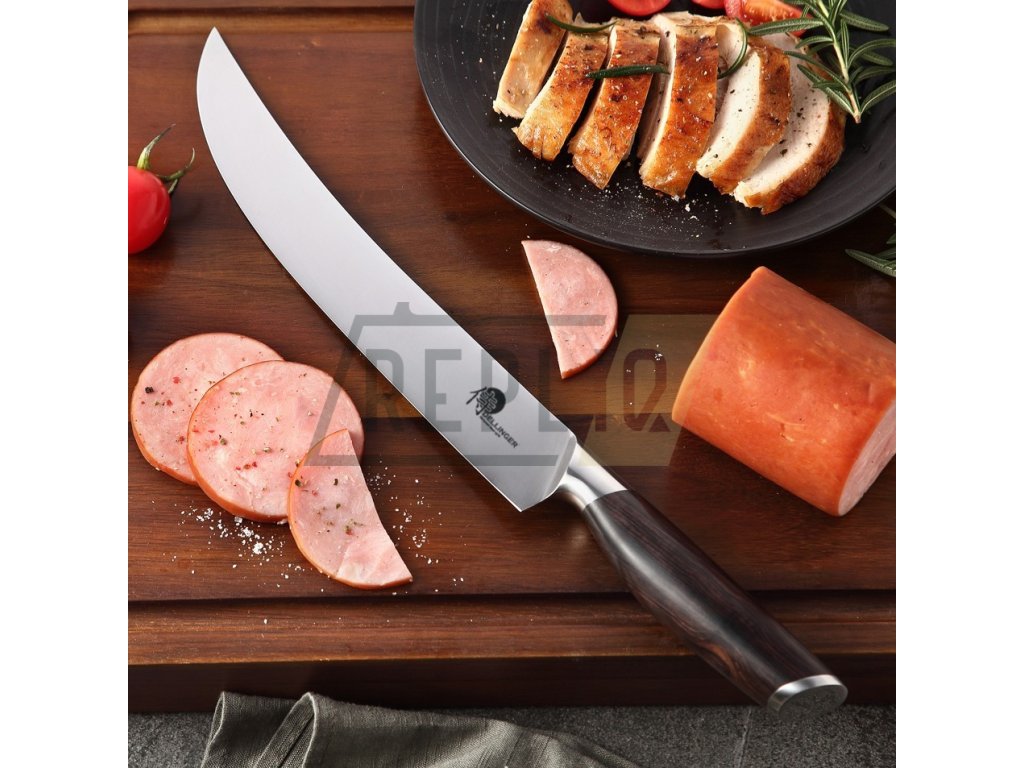 Velmi ostrý plátkovací nůž Dellinger BBQ Carve z německé nerezové oceli 1.4116 s působivým designem a nejvyšší kvalitou. Zajistěte, aby každá krůta, každá pečeně nebo šunka byly dokonale nakrájené. Pokud patříte k milovníkům hovězího carpaccia, měl by se tento nůž stát povinnou výbavou vaší kuchyně. Dlouhá čepel a rukojeť západního stylu vám poskytnou nejlepší kontrolu při řezání a krájení.
