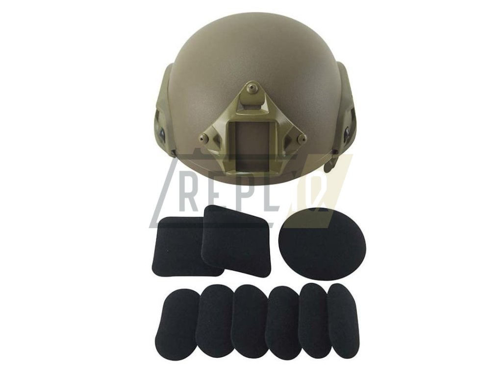Replika americké balistické helmy ACH/MICH, známá také pod označením TC 2000. Odnímatelné polštářky polstrování umožňují helmu nosit i s klasickými střeleckými sluchátky. Přední montáž je určená pro uchycení přístroje nočního vidění, boční lišty slouží k připevnění kompatibilního příslušenství (svítilna, sluchátka atd.).