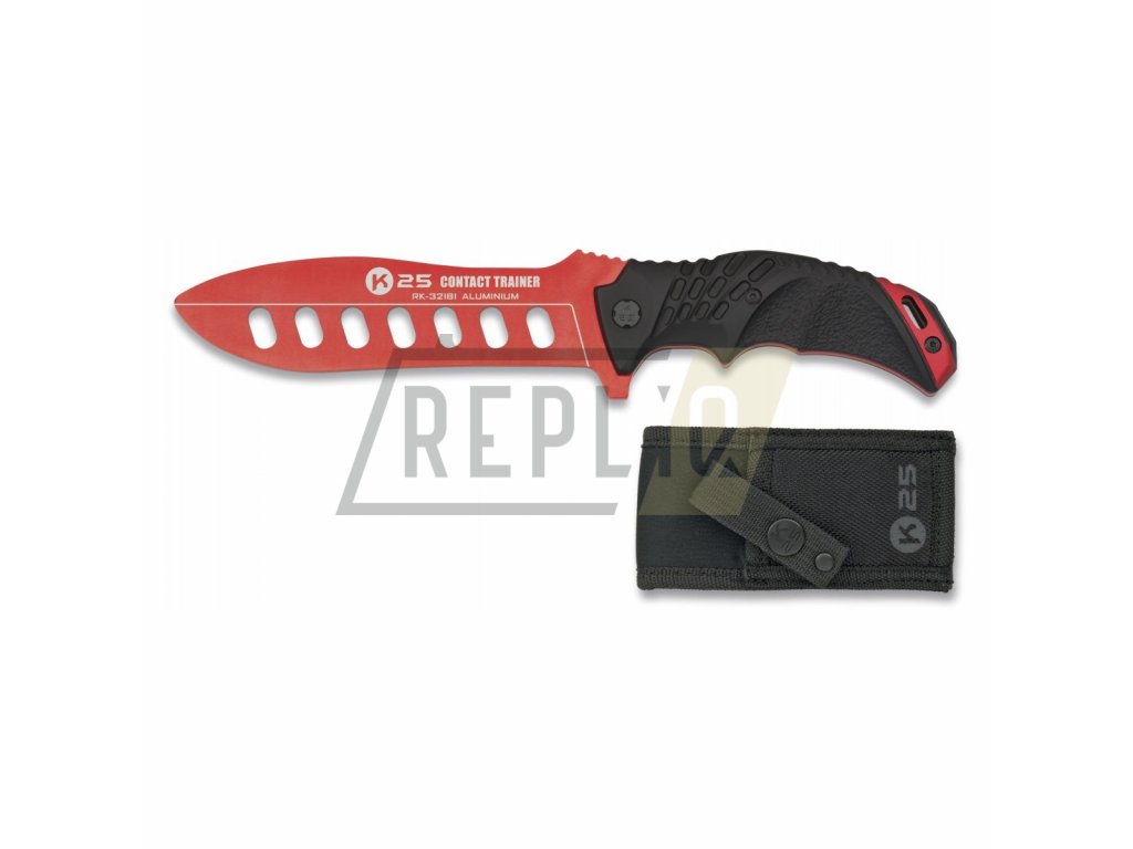 Kontaktní cvičný nůž vyrobený z hliníku červené barvě. Nůž je dodáván s nylonovým pouzdrem.