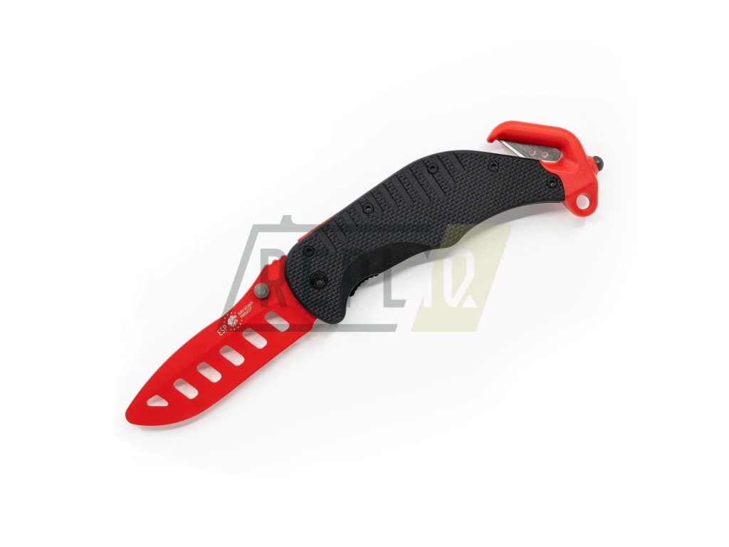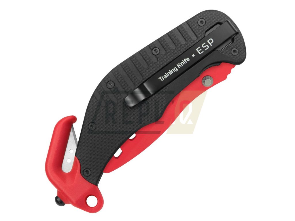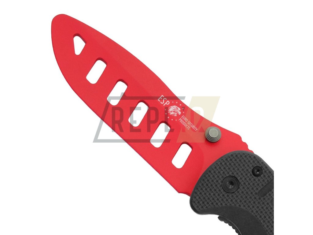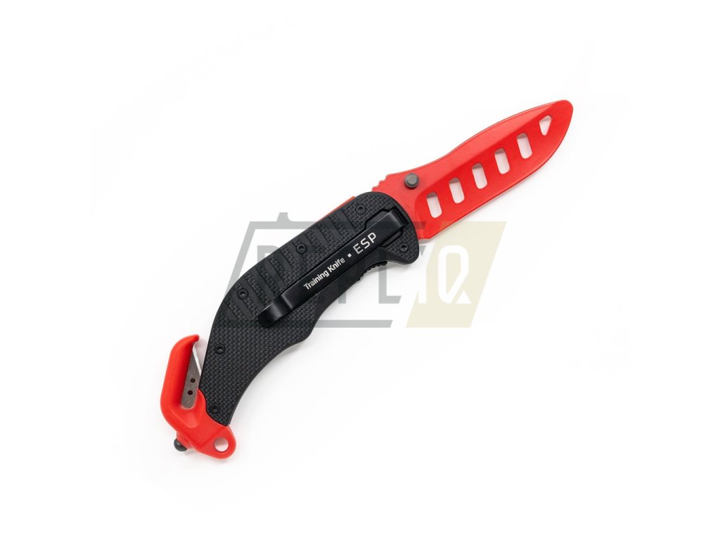 Tento cvičný nůž je tréninkovou verzí služebního a záchranářského nože ESP. Slouží především k bezpečnému nácviku tasení, sebeobranných postupů a technik. Díky použitému materiálu a tvaru čepele s několika výřezy má tento výcvikový prostředek přibližně stejnou hmotnost a těžiště jako jeho reálná předloha. Zaoblené hrany, absence ostří a dostatečná tloušťka čepele zaručují co nejreálnější, a přitom maximálně bezpečný nácvik s nožem. Díky jasně červené barvě čepele na první pohled rozlišíte, zda se jedná o tuto cvičnou pomůcku, nebo o skutečný záchranářský nůž. Čepel nože zajišťuje v otevřené poloze pojistka typu liner lock.