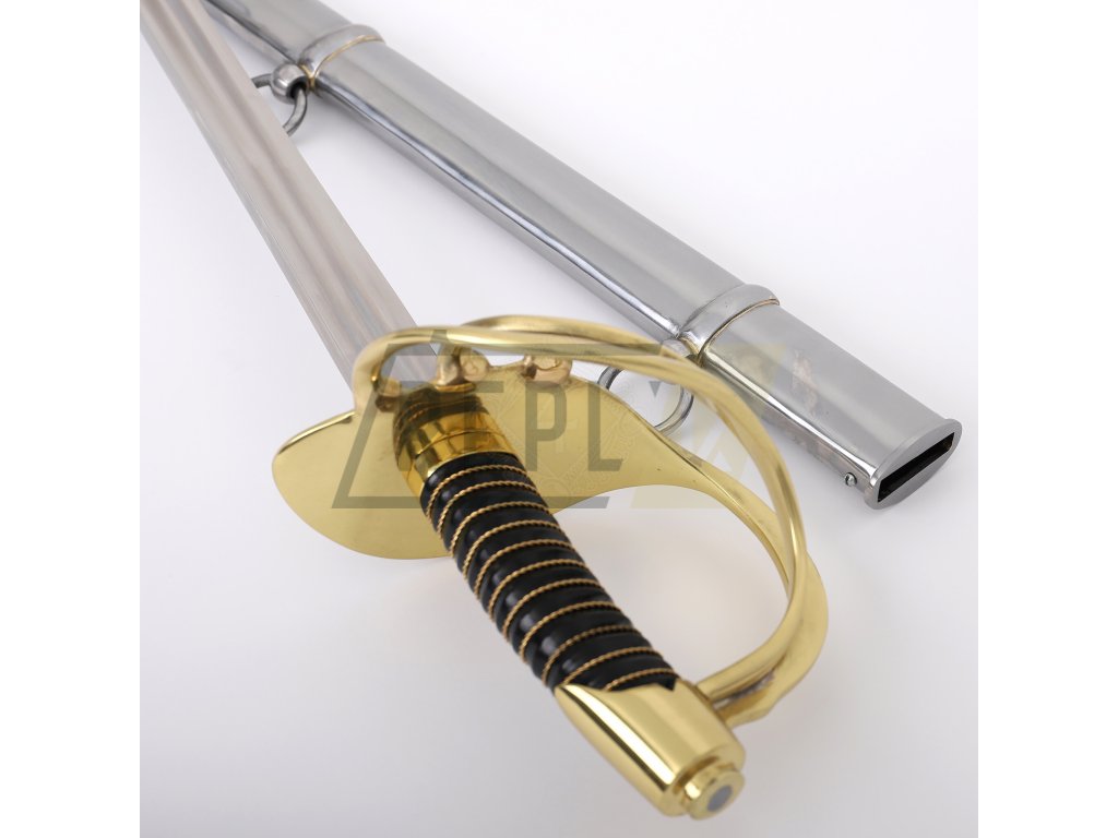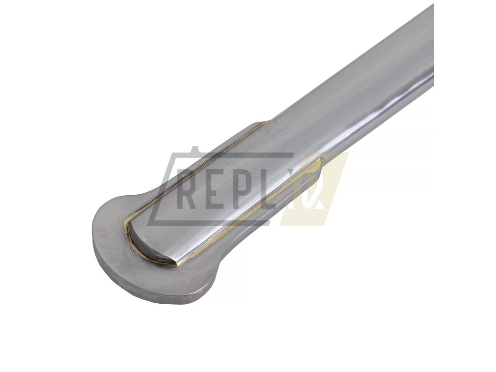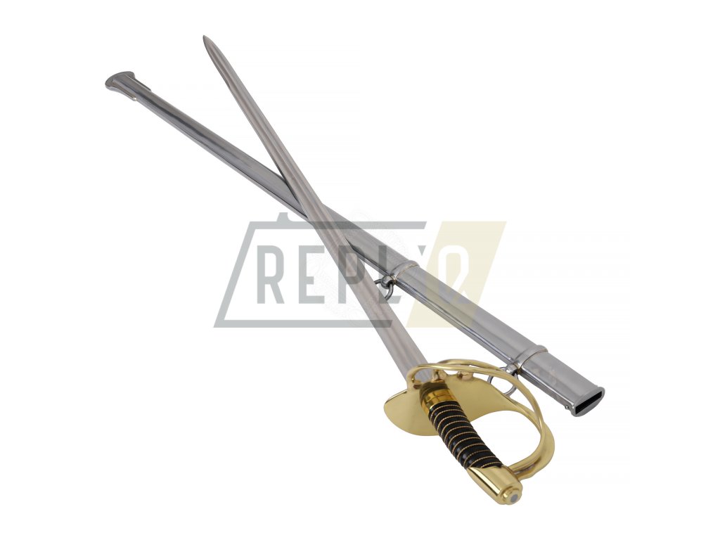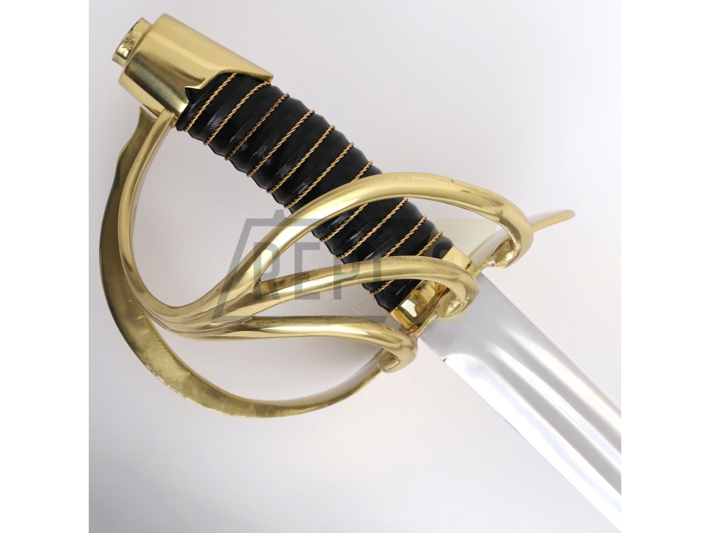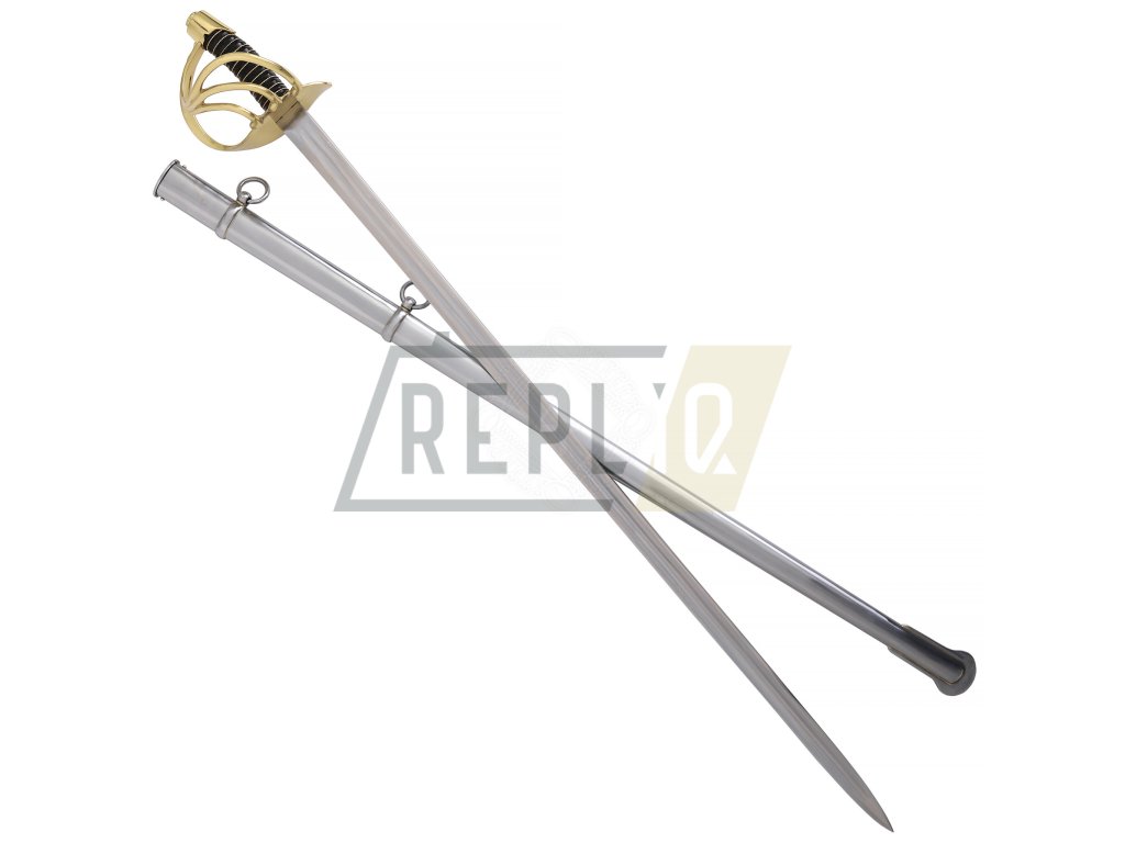 Francouzský napoleonský kyrysnický meč z roku 1801Toto je francouzský kyrysnický meč vzor 1801. Jedná se o těžkou jezdeckou šavli s rovnou čepelí, protože Francouzi dávali přednost bodání před sekáním. Tato replika váží něco málo přes 3 libry (1360g), což je značná hmotnost potřebná k provedení útoku kopím. Distálně se zužující čepel je u rukojeti silná přes 1/4" (6,3 mm) a má dvojitý žlábek stejně jako originály. Dodává se naostřená z výroby. Záštita a hlavice jsou z mosazi. Rukojeť s omotávkou z krouceného drátu je potažená kůží.