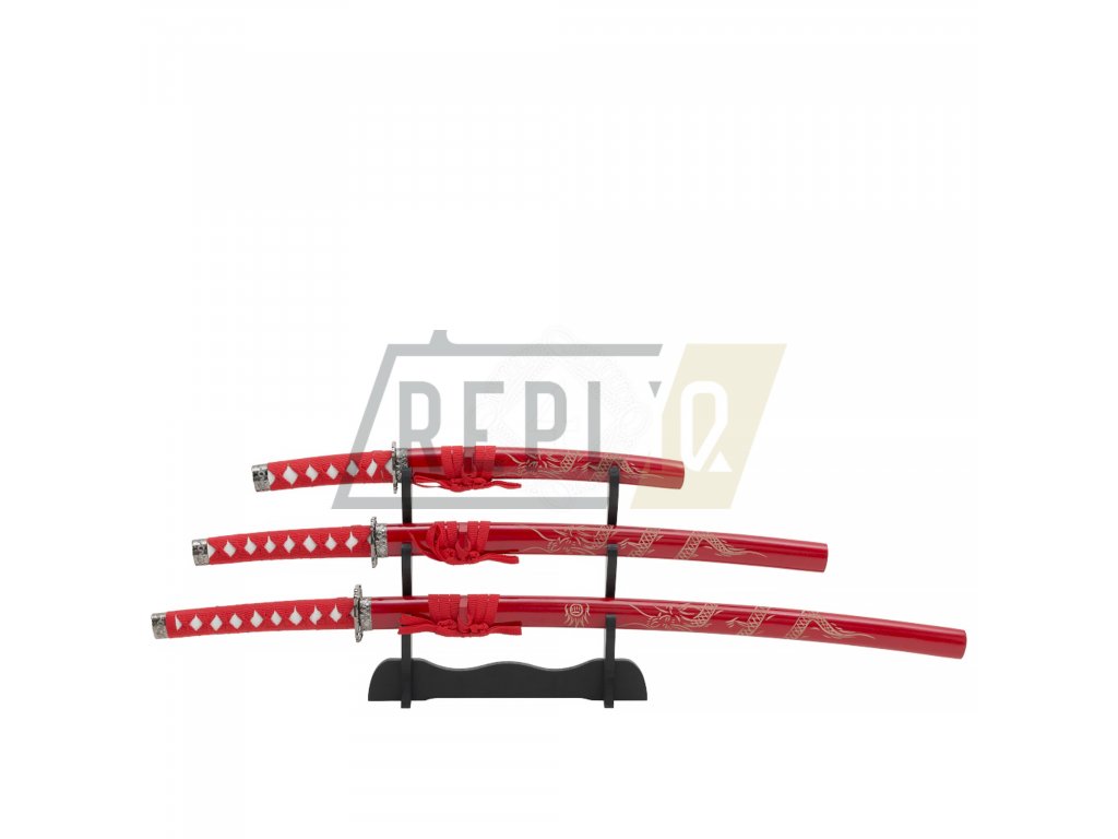 Sada samurajských mečů Red DragonKatana: Délka čepele 68cm, celková délka 93,5cm s pochvou 100cm