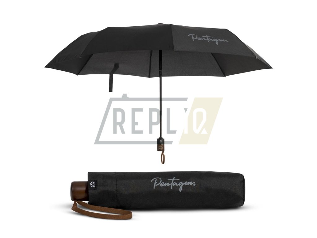 Automaticky rozevíraný deštník s teflonovou povrchovou úpravou stříšky. Stříška je vyrobená z SPF80 UV odolného polyesteru a je zesílená tak, aby při zachování tvaru odolala působení silného větru. Otvírání je řešeno pomocí tlačítka umístěného v rukojeti, která je z části vyrobena ze dřeva s vyvedeným logem značky PENTAGON. Ve složeném stavu deštník měří pouhých 27,5 cm, bez problému se tak vejde do většiny batohů či tašek. Samozřejmostí je dodávaný textilní transportní obal.