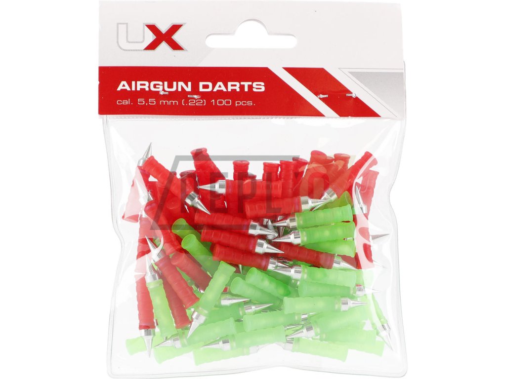 Umarex vzduchovkové šipky kalibru 5,5mm, kovová střela s plastovým tělem a vyšší hmotností.Pro snadné přiřazení zásahů je 50 šipek červených a 50 zelených.