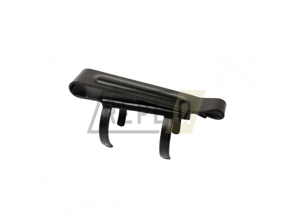 Tento kovový klip se jednoduchým způsobem nasadí na kompaktní teleskopický obušek a umožňuje tak jeho skryté nošení na opasku z vnitřní nebo vnější strany kalhot a nebo na taktické vestě.