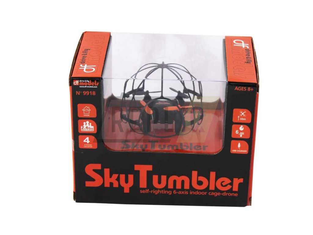 Sky Tumbler je model o velikosti přibližně 6,5 cm a je instalován v ochranné kleci. Tato klec zabraňuje poškození způsobenému stykem s překážkami (stěnami atd.). Model je tak dobře chráněn a dokonale vhodný pro letové provozy v kancelářích, obytných místnostech apod. Pro zkušenější piloty je klec odnímatelná.