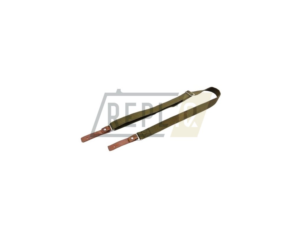 Pevný zbraňový popruh určený pro pušky AK-47 a jim podobné. Popruh je vyrobený z odolné bavlny a je zakončený koženými oky. Délkově nastavitelný od cca. 66 do 120 cm.