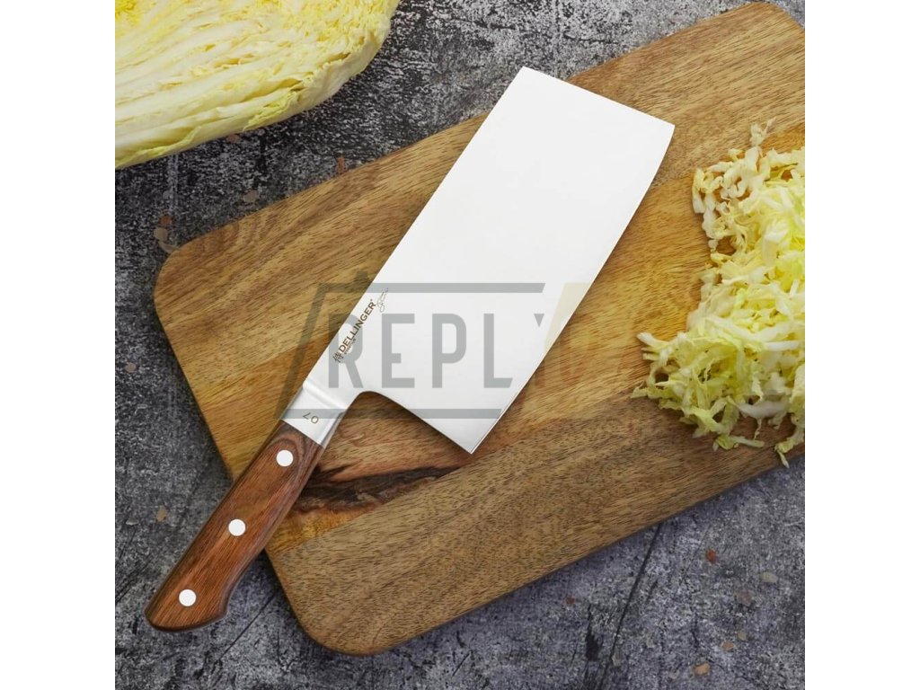 Sedmý nůž z nové série Dellinger Essence. Čínský univerzální nůž "sekáč" Sekáč, inspirovaný asijským stylem, je skvělý krájecí nůž typu Tao (někdy nazývaný Chucabocho), který je určený na hravé krájení surovin s vysokou přesností. Tento nůž je ideální pro přípravu tenkých nudliček papriky, jemného zelí nebo ledového salátu, kdy vás překvapí, jak snadno a rychle můžete nakrájet i objemnější zeleninu. Nůž s čepelí dlouhou 180 mm je vyroben z německé oceli 1.4116, známé svou vysokou odolností proti korozi a schopností udržet ostří po dlouhou dobu. Nůž Cleaver s rukojetí z pakkawoodu, která je nejen stylová, ale i odolná vůči vlhkosti a teplotním změnám.