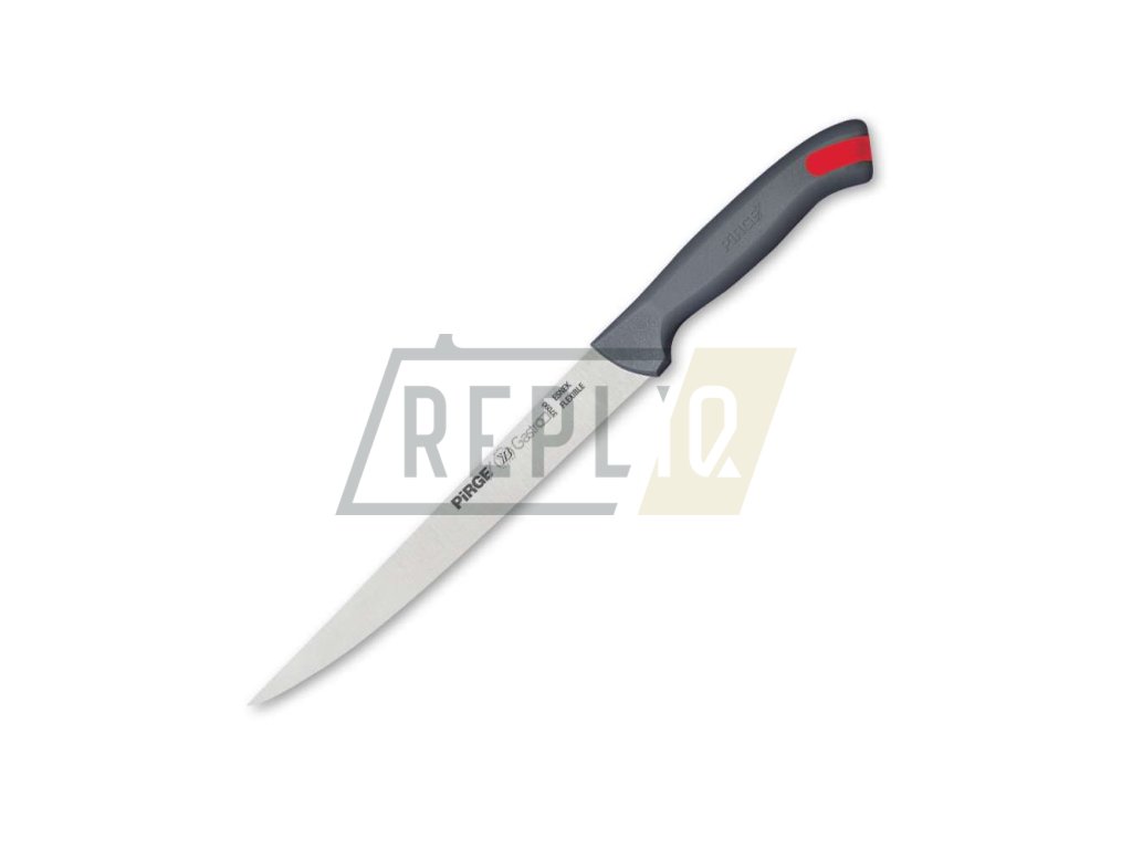 Nože ze série Pirge GASTRO z německé nerezové oceli 1.4116 jsou určeny jak pro profesionální Gastro provozy, tak i k běžnému domácí použití. Tvrdost ostří dosahuje 56-58 HRC a je broušeno pod úhlem 20 stupňů. Síla ostří se pohybuje v závislosti na typu nože a velikosti v rozmezí 1,8 - 2,5 mm. Tvary nožů byly navrženy profesionály s mnohaletými zkušenostmi. Filetování, stahování kůže z menších ryb, porcování ryb, roastbeefu – nic nebude pro tyto nože problém. Nože Pirge GASTRO jsou ideální pro gastro-provozovny a restaurační kuchyně. Ke každému noži obdržíte 7 barevných pinů, dle HACCP a je jen na Vás, který z nich použijete. Záruka na tyto nože je 5 let a vztahuje se na jiná, než mechanická poškození a výrobní vady.