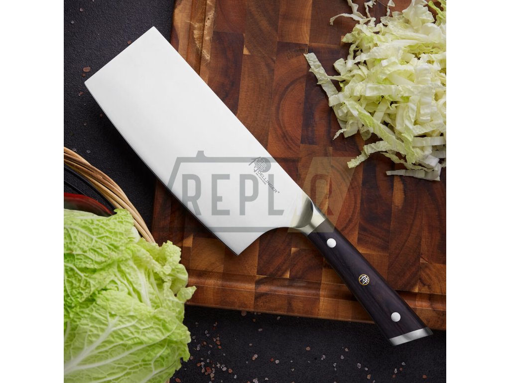V Číně se tento typ nože nazývá "TAO", což znamená "meč" od konvenčních kuchyňských nožů se liší tím, že ostří je tlustší a širší a je schopen řezat velké kusy (jako je maso, kuře atd.) - využívá se k sekání a řezání zeleniny a masa. Čínský nůž je ideální pro krájení menších kusů vykostěného masa a drůbeže. Velmi dobře si poradí s krájením a sekáním tvrdé zeleniny - včetně velkých hlav kapusty a hlávkového zelí. V asijské kuchyni funguje tento stylový čínský nůž jako "šéfkuchařský nůž", který nabízí překvapivou všestrannost, hbitost a ostrost. Vrchní část čepele lze použít k drcení zázvoru nebo česneku, zatímco ostří řeže, seká a krájí s mimořádnou přesností. Extra vysoký profil čepele umožňuje vynikající a jednoduchý přenos nakrájených polotovarů do hrnce nebo pánve.