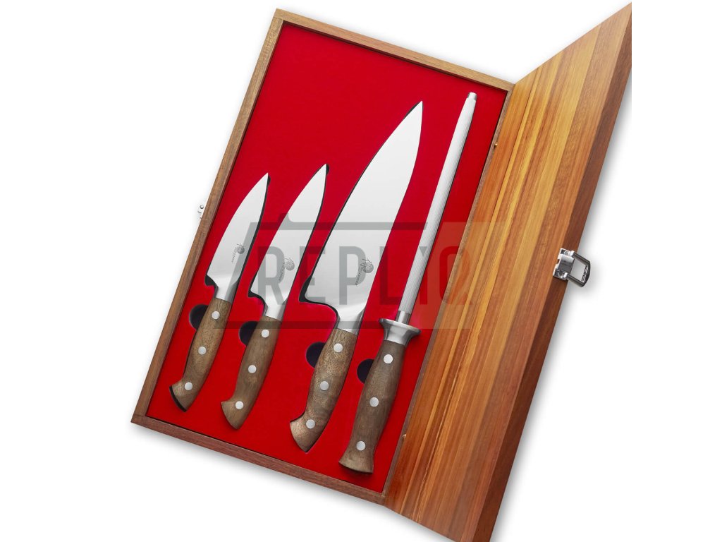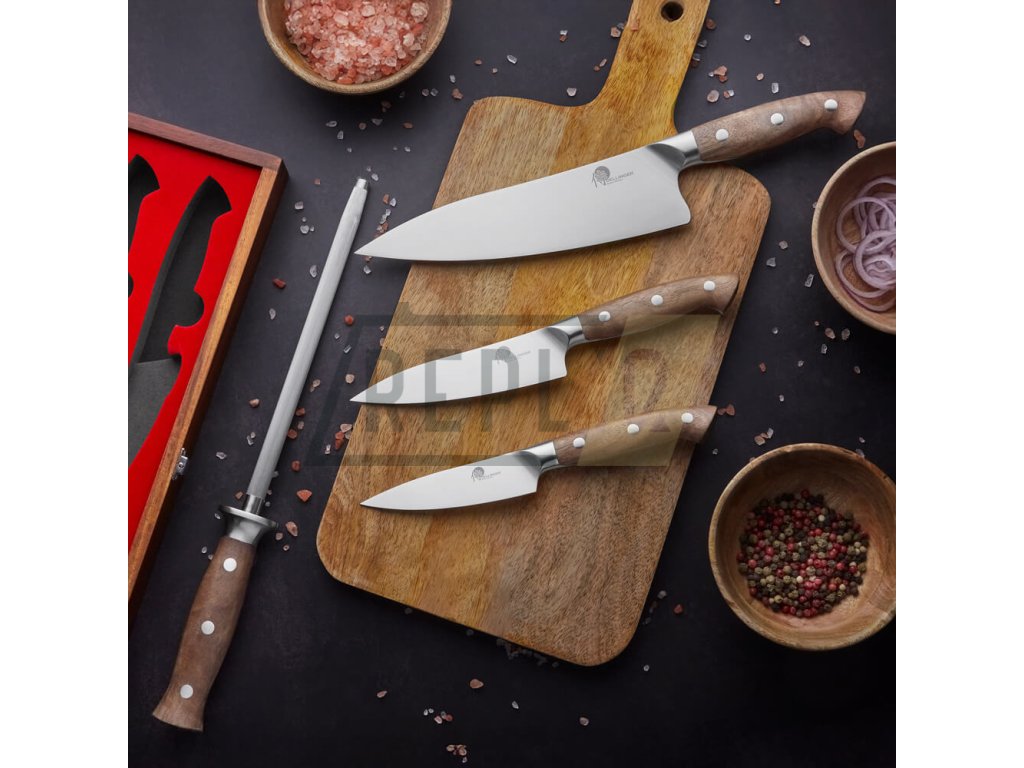 Sada 3 nožů + ocílka v dřevěné dárkové krabici, Dellinger Walnut