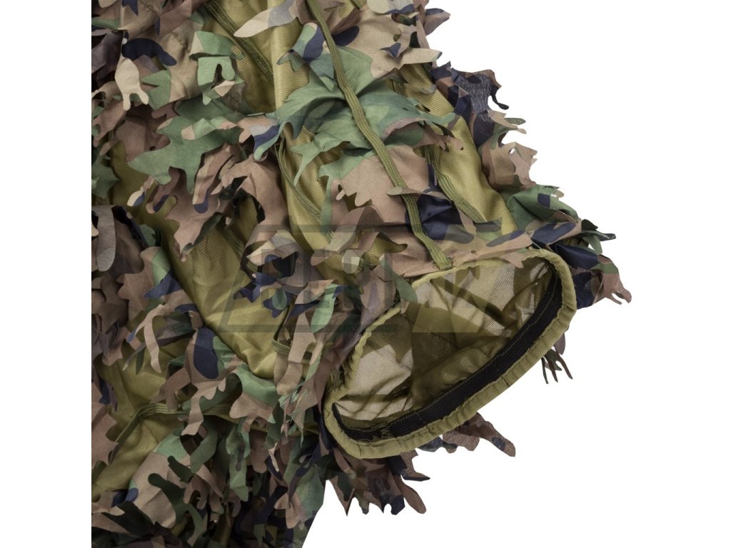 Ultralehký maskovací převlek tvořený kalhotami a blůzou. Set je vyrobený z odolného, lehkého a prodyšného polyesteru. Povrch je pošitý laserem vyřezávaným listím v oboustranném maskování US WOODLAND. Díky našitým šňůrám je možné toto listí doplnit o další maskovací materiál přírodního i umělého původu. Blůza se zapíná pomocí dvojice přezek a disponuje velmi hlubokou kapucí. Set je perfektní k průzkumným operacím a může být použitý s dalšími produkty značky HELIKON jako jsou batohy či chest rigy. K produktu je dodávaný kompresní vak.