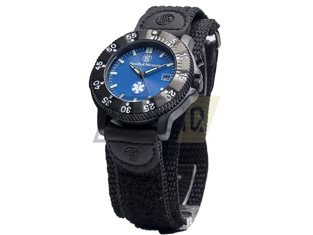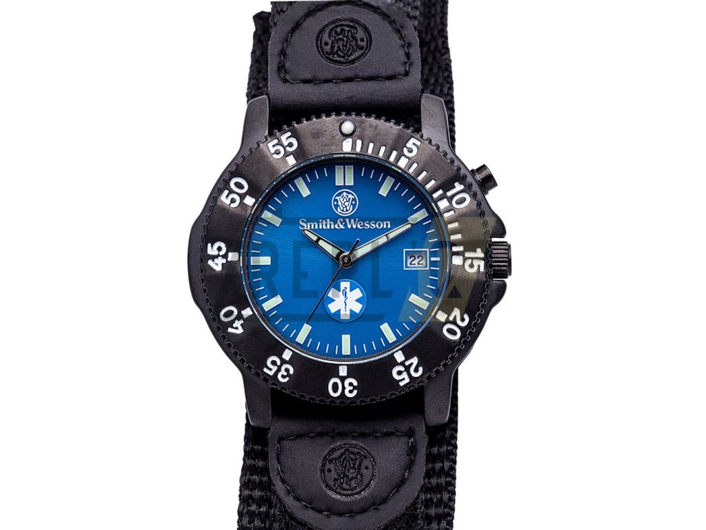 Stylové hodinky s EMT (Emergency Medical Technician) znakem a modrým budíkem. Hodinky jsou opatřeny japonským strojkem a disponují voděodolností 30 m (běžné mytí rukou, dešťová přeháňka, cáknutí louže). Budík je chráněný minerálním sklíčkem odolným vůči poškrábání a trojice ručiček ukazují hodiny, minuty a sekundy. Pásek hodinek je nylonový.