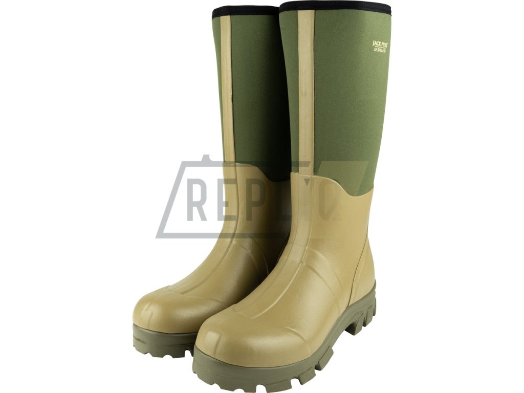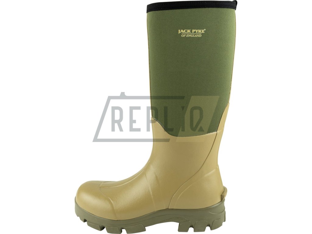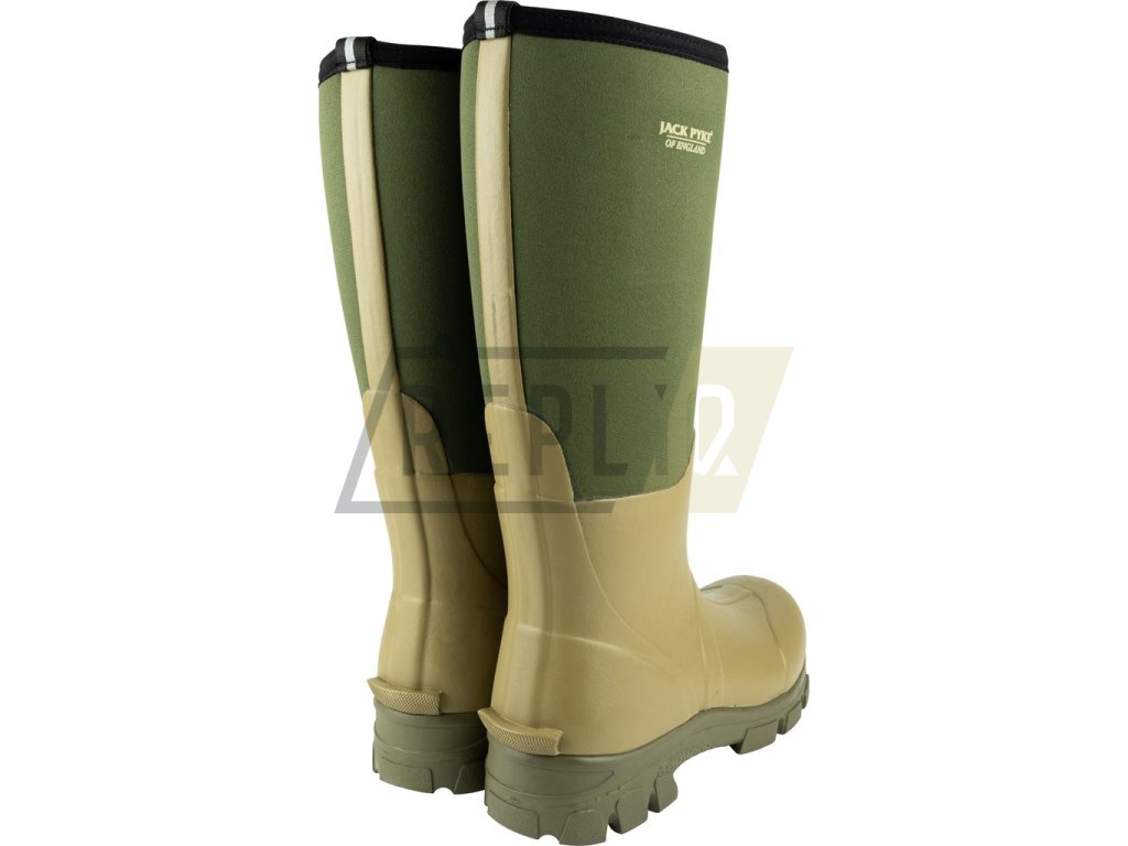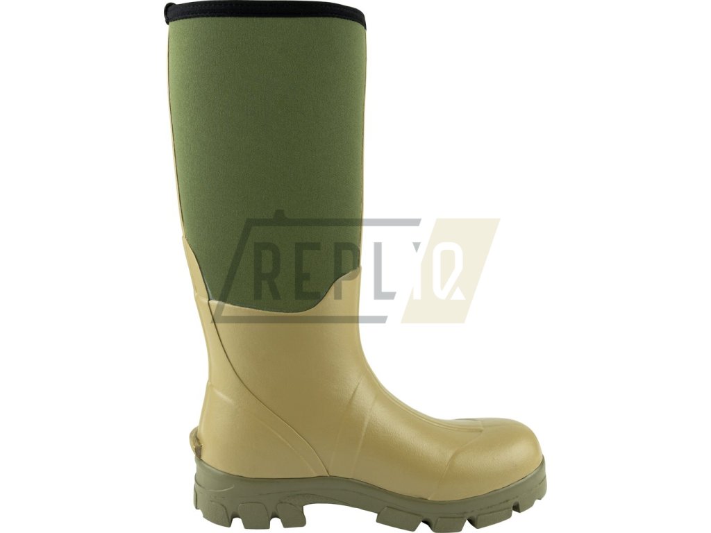 Vrchní část holínek je podšitá vrstvou neoprenu o tloušťce 3 mm. Ten zajišťuje optimální pohodlí a vysokou úroveň hřejivosti. Svršek boty je gumový. Podrážka je zvýšená a disponuje poměrně hlubokým vzorkem dodávajícím skvělou stabilitu v bahně a podobně náročném terénu. Pro snadné nazouvání jsou holínky opatřeny odnímatelným poutkem v horní části.