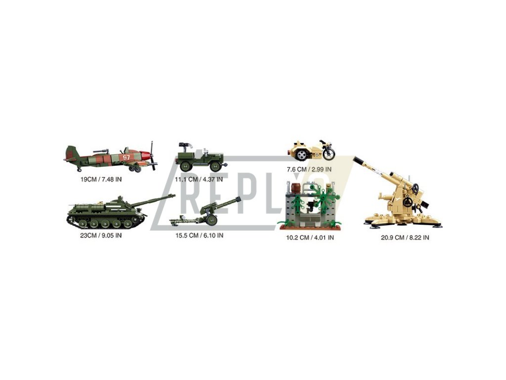 Stavebnice znázorňující slavnou druhoválečnou bitvu u Kurska. Stavebnice je ideálním dárkem pro dítě či army nadšence. Obsahuje celkem 998 dílků a 8 minifigurek. Vhodné od 6 let.