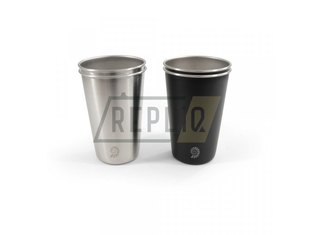 Sada čtyř hrnků/kelímků, vyrobené z kvalitní nerezové ocele. 2 hrnky jsou v lesklé stříbrné barvě, 2 hrnky jsou na vnější straně černé. Všechny hrnky do sebe perfektně pasují, usnadňují tak případné skladování nebo přenášení.