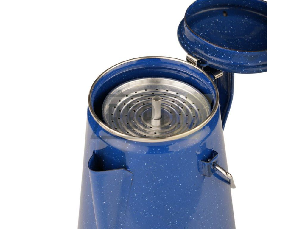 Dvoulitrová smaltovaná konvice, jejíž součástí je vyjímatelný perkolátor a víčko. Perkolátor slouží k filtraci kávy (podrobnosti níže). Konvice je vybavená uchem a držákem, díky kterému můžete konvici zavěsit nad oheň.