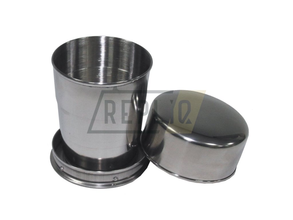 Nerezový teleskopický skládací hrnek, díky svým kompaktním rozměrům vhodný na cesty.