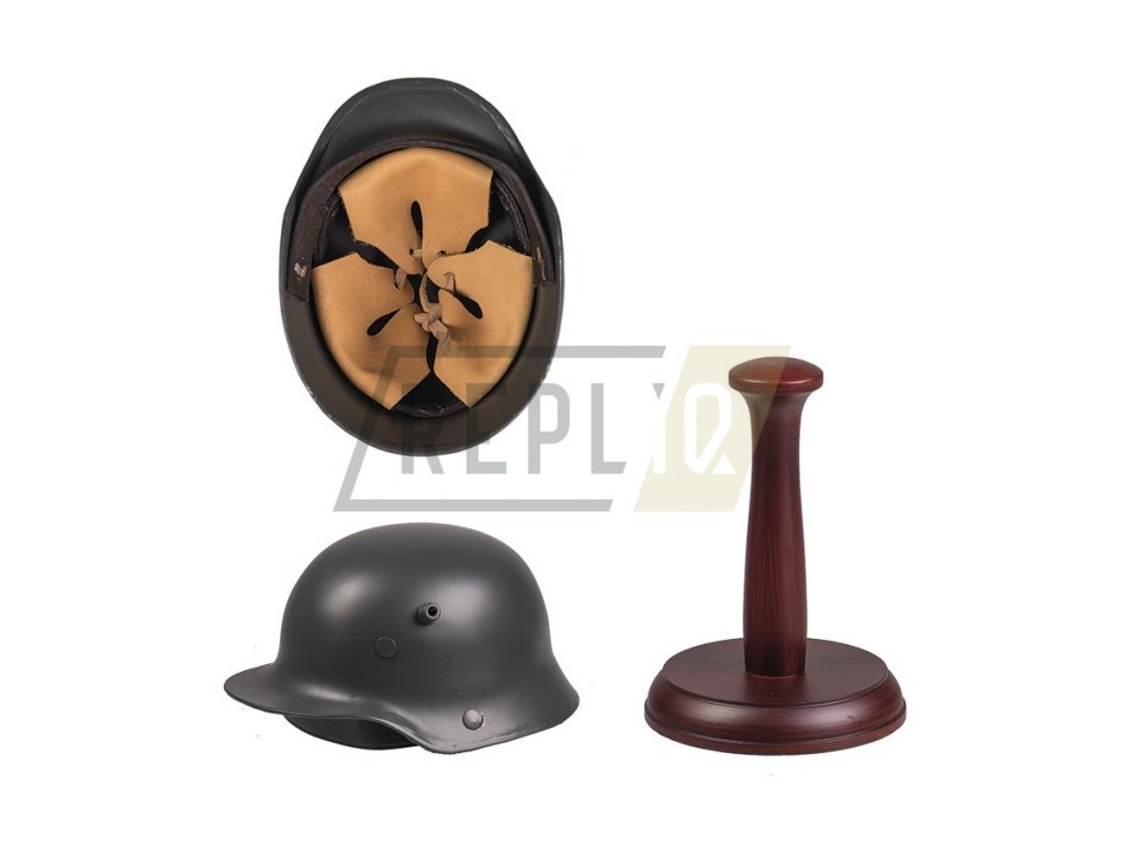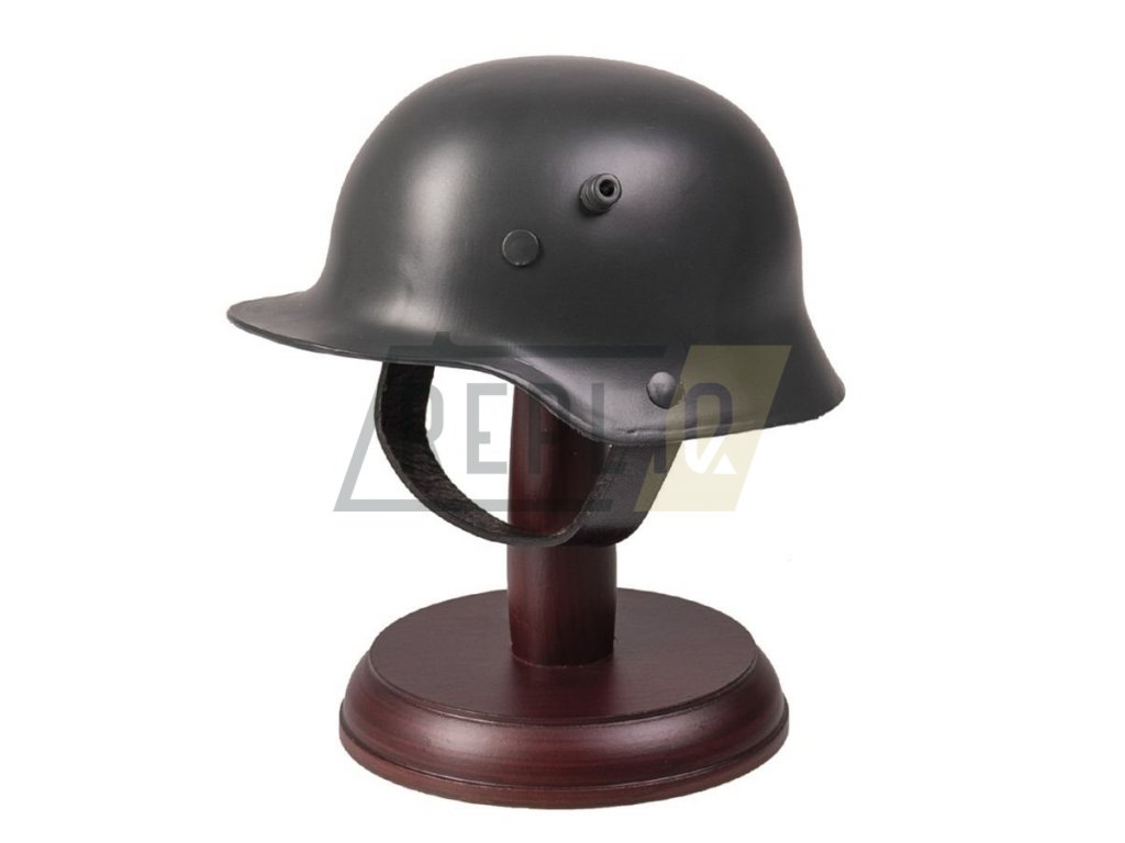 Propracovaná replika, zmenšenina, německé helmy M16 na dřevěném stojánku. Helmu lze ze stojánku sundat. Originální ozdoba pro vaši kancelář, obývací pokoj, dětský pokoj, dílnu apod.