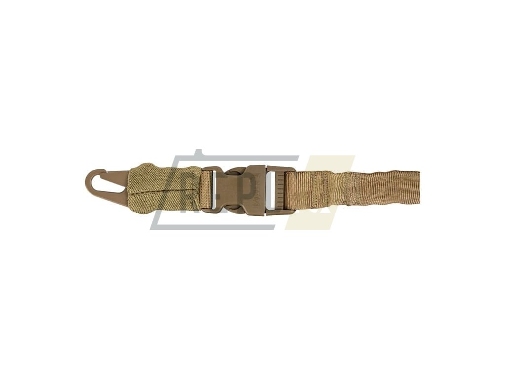 Jednoduchý jednobodový zbraňový popruh kompatibilní s MOLLE/PALS modulární vazbou. Popruh je fixovaný pomocí karabinky a je možné jej rychle odepnout pomocí plastové FASTEX přezky.