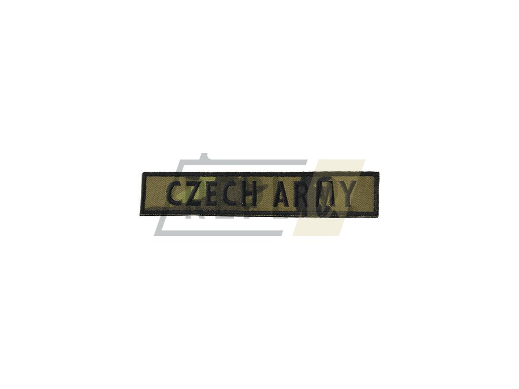 Nášivka s nápisem CZECH ARMY, látka s maskováním vzor 95. Rozměr cca 14 x 2,7 cm. Na rubu se suchým zipem.