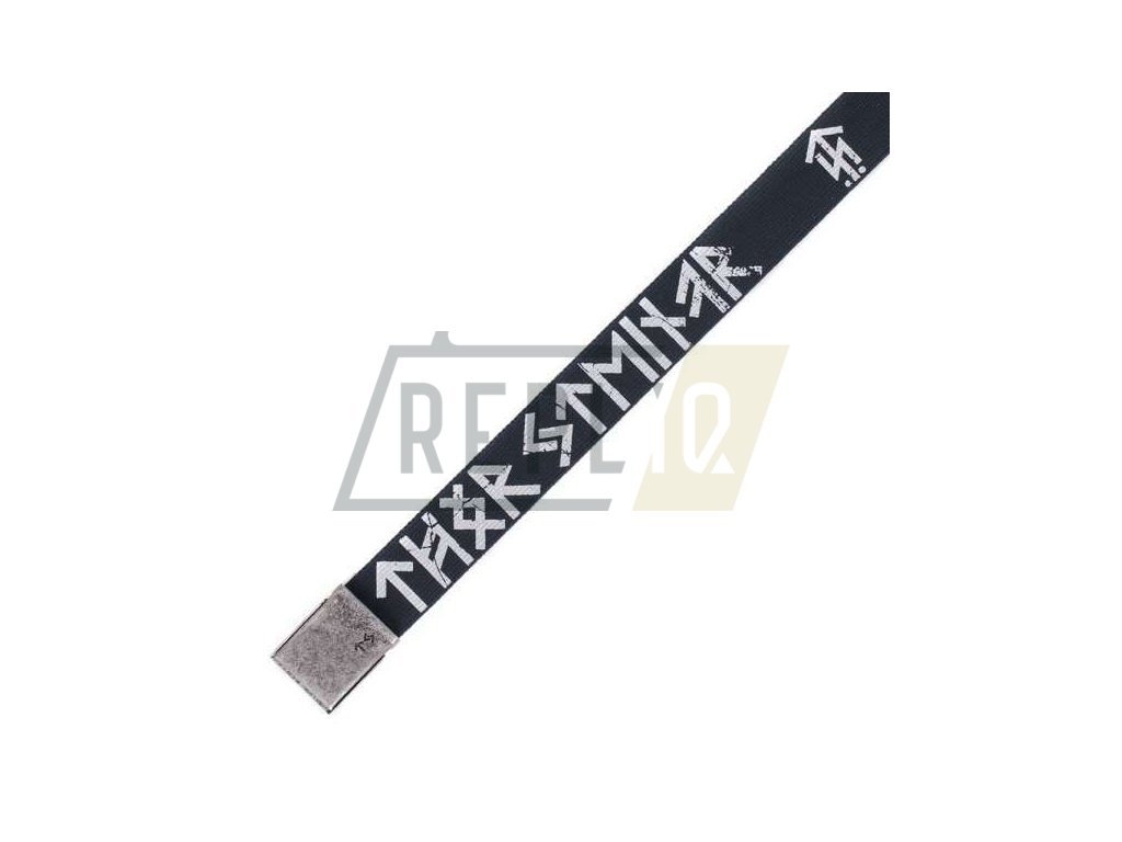 Plátěný opasek Thor Steinar s celoplošným motivem a reliéfní kovou přezkou.