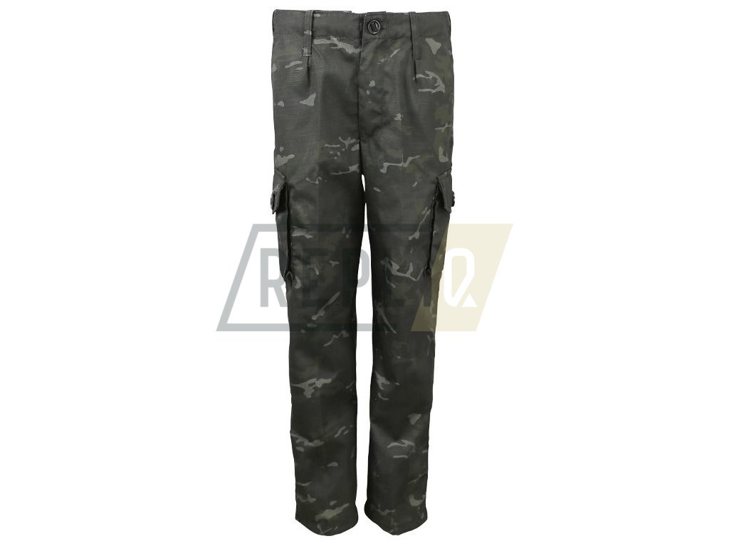 Dětské maskáčové kalhoty s černým maskovacím vzorem BTP (British Terrain Pattern), které je velmi podobné maskování MultiCam Black.
