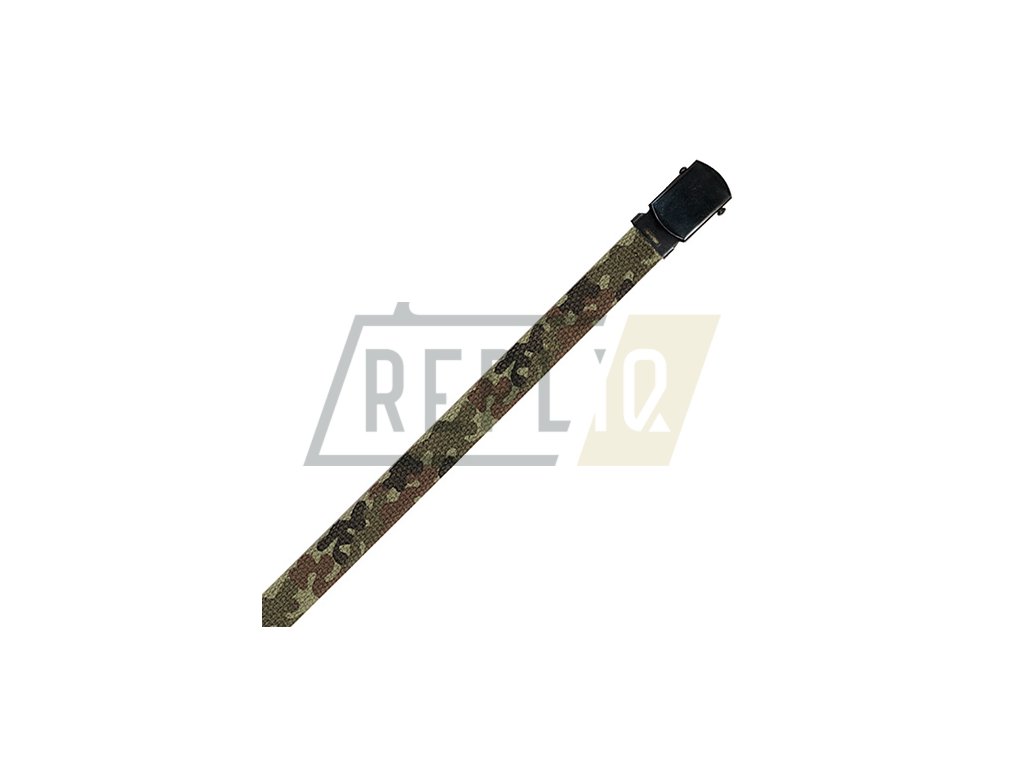 Dětský oboustranný opasek s kovovou přezkou. Barva woodland/zelená. Délka 86 cm, šířka 2,5 cm. Materiál: 100 % bavlna.
