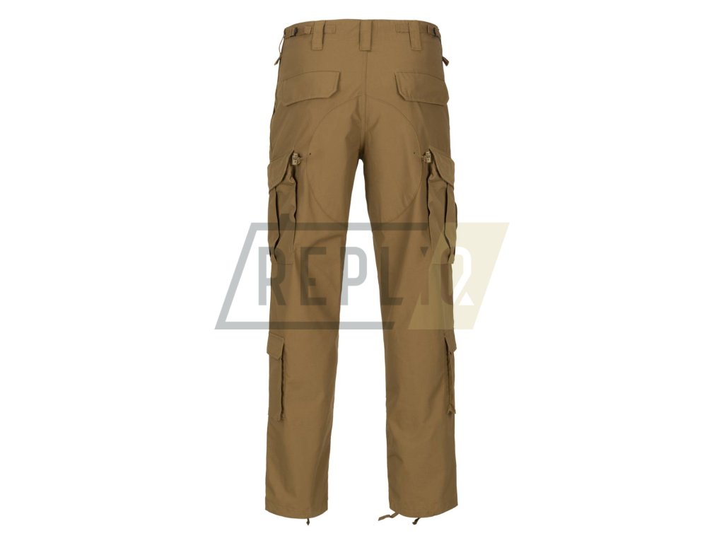 - Dvě kapsy na stehnech (na suchý zip klopy s přídavným drukem + šňůrky uzavření)