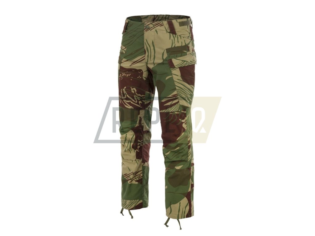 Opasková očka pojmou opasky do šiře 45 mm. Kalhoty se zapínají pomocí čtyř knoflíků s logem HELIKON-TEX a jejich velikost v pase se dá regulovat pomocí bočních suchých zipů. V oblasti sedu a kolenou jsou kalhoty zesílené, přičemž na kolenou najedete kapsy pro vložení chráničů.