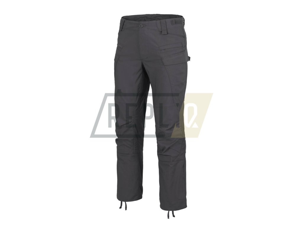 Opasková očka pojmou opasky do šiře 45 mm. Kalhoty se zapínají pomocí čtyř knoflíků s logem HELIKON-TEX a jejich velikost v pase se dá regulovat pomocí bočních suchých zipů. V oblasti sedu a kolenou jsou kalhoty zesílené, přičemž na kolenou najedete kapsy pro vložení chráničů.
