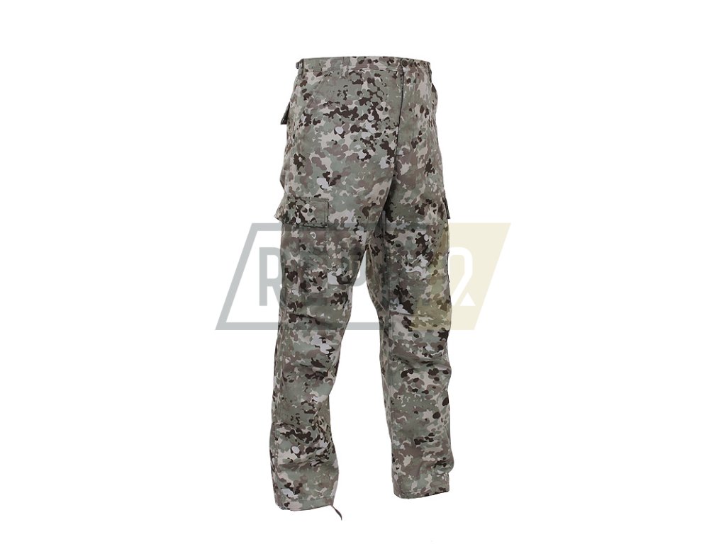 Velmi kvalitně provedené a praktické kalhoty typu BDU (Battle Dress Uniform) od americké firmy Rothco. Oproti kalhotám od konkurenčních výrobců se vyznačují vysokou stabilitou barev. Jsou velmi pohodlné a vhodné téměř do každého klima i k různorodým aktivitám, a to včetně civilního každodenního nošení. Doporučujeme k celkově vysoké kvalitě zpracování. U vybraných barev i nadměrné a prodloužené/zkrácené velikosti.