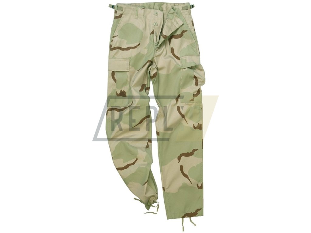 - pohodlné kalhoty podle střihu US BDU uniformy (Battel Dress Uniform) v maskování 3 colour desert