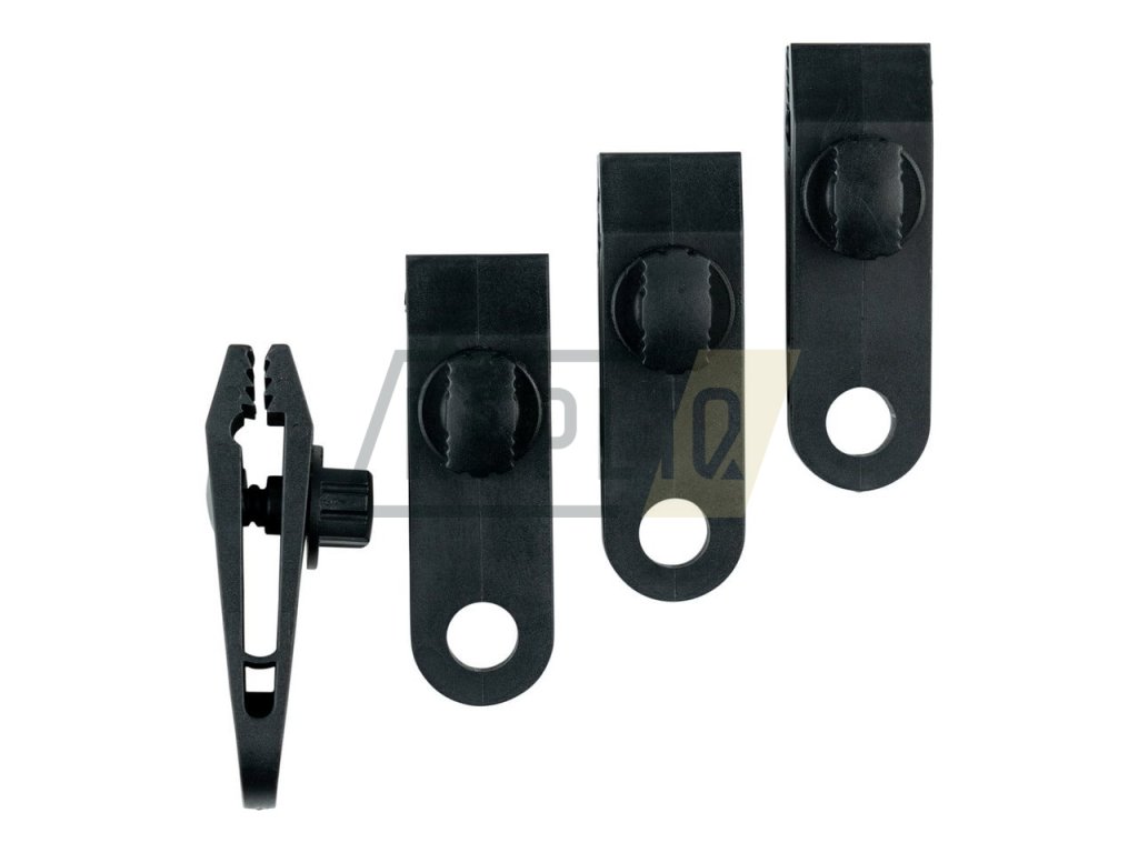 Praktické plastové spony určené k napnutí plachty, tropika stanu, maskovací sítě, krytu bazénu apod. Spony jsou vyrobené z kvalitního plastu odolávajícímu větru i abrazi. Očko na konci spony slouží ke snadnému provlečení pojistné šňůry, lana apod.