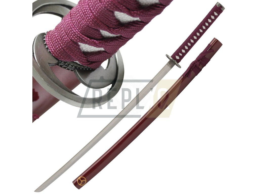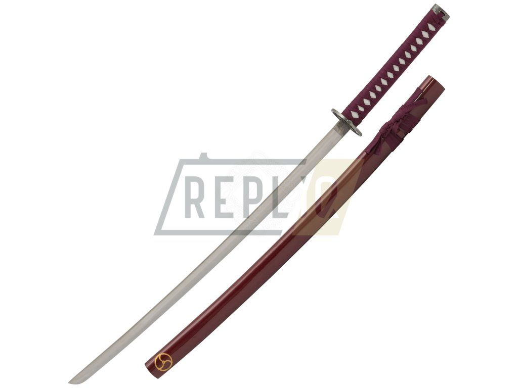 Meč Katana ve vínové barvě s Mitsudomoe