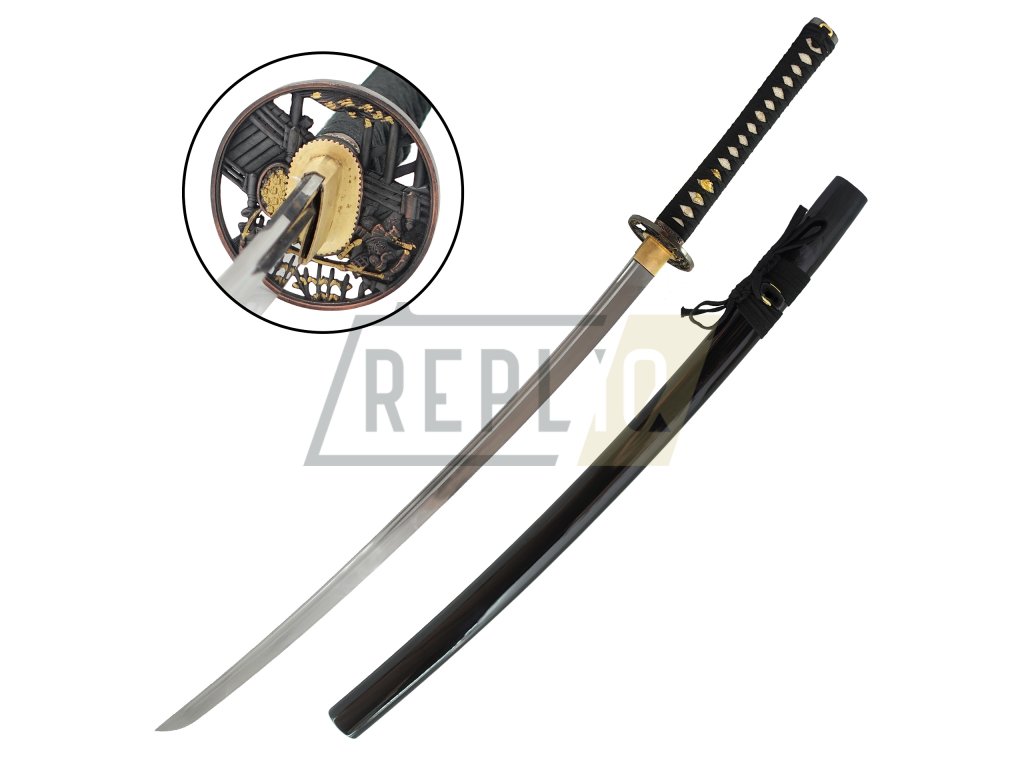 Saya, pochva katany je vyrobená z tvrdého dřeva, které je lakováno na černo.