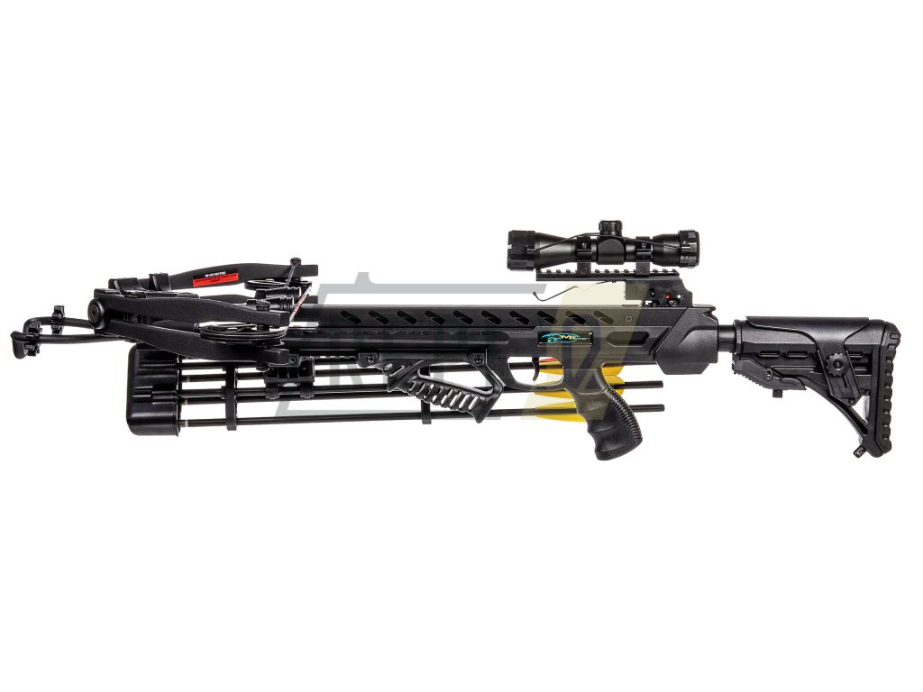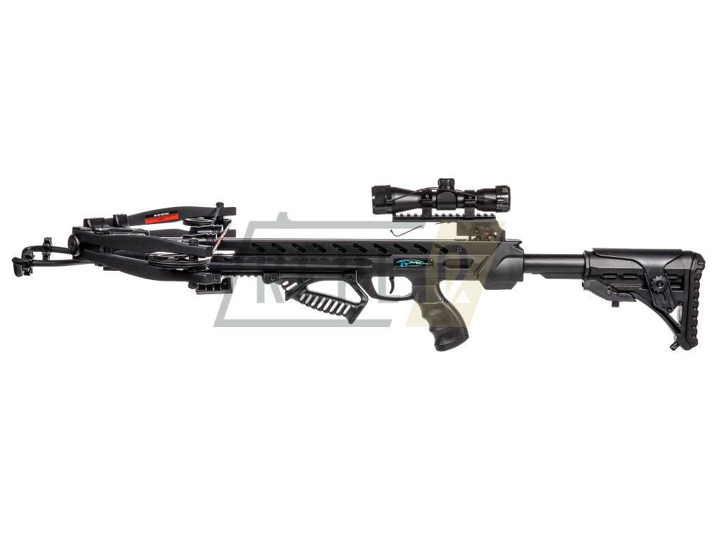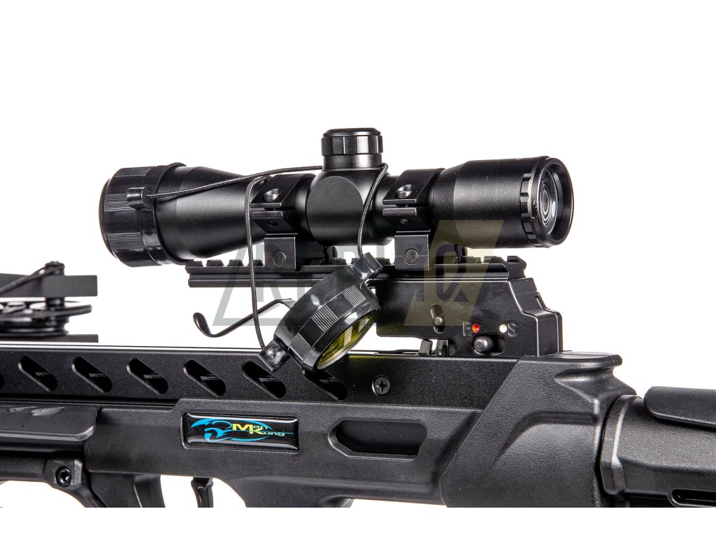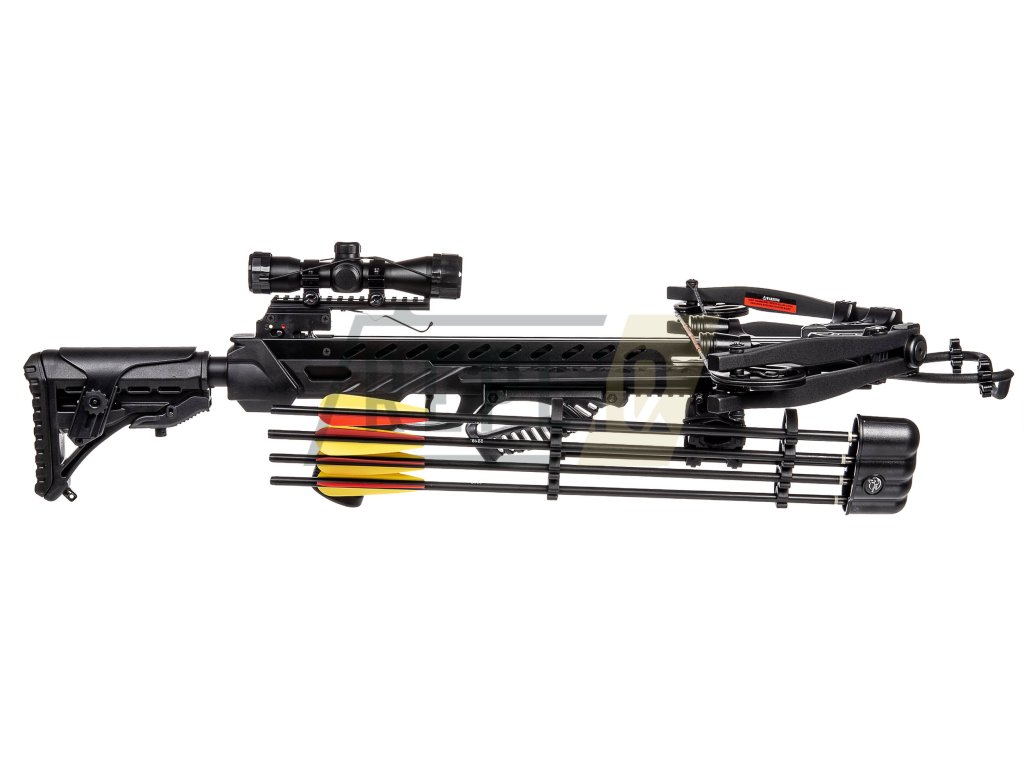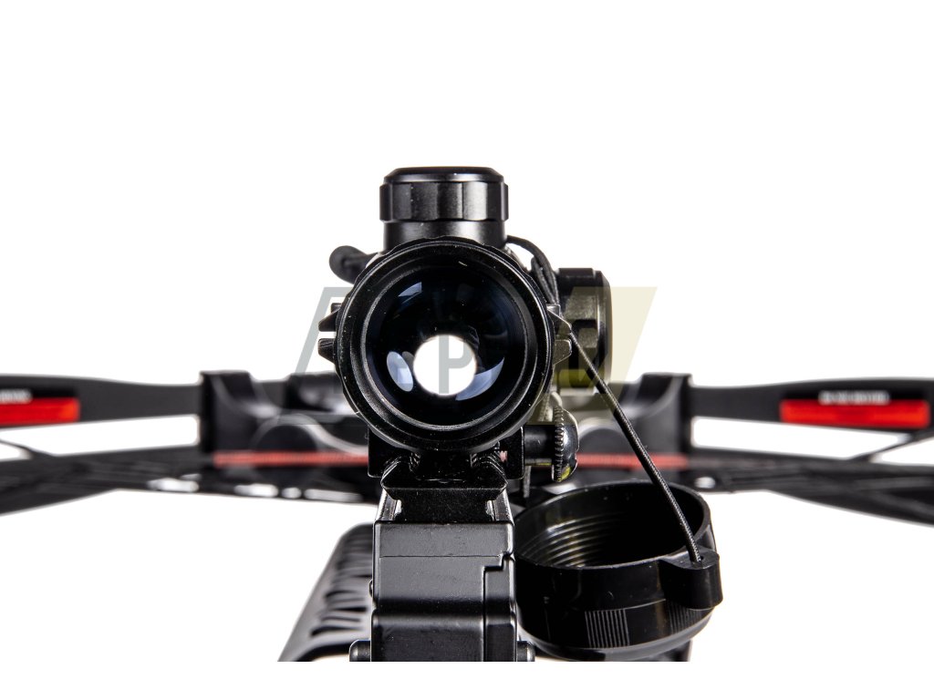 Kuše je osazena 22mm weaver lištou, kam hravě usadíte kušohled 4x32, který je součástí balení (s montáží). Spolu s kuší dostanete kompletní výbavu pro správného lovce jako čtyři 20" duralové šípy, držák šípů, popruh nebo natahovák tětivy.